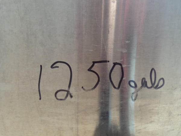 Friesen Stainless Steel Liquid Tank (PZ9085), Friesen 1250 gallon vertical stainless steel dish bottom liquid tank, stainless steel legs.