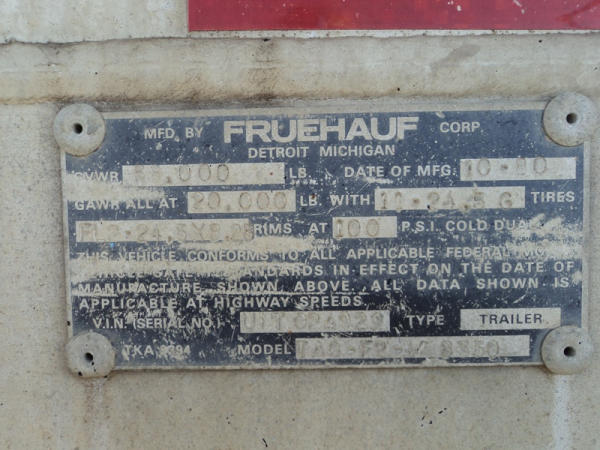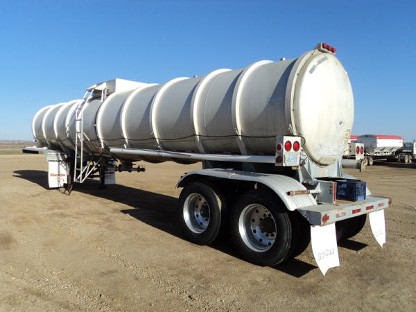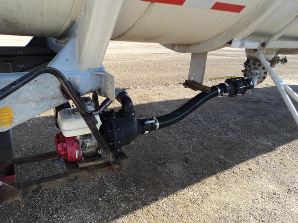 1980 Fruehauf Liquid Transport Trailer (PZ9088, Unit 341), 1980 Fruehauf 8350 gallon aluminum liquid transport trailer, Honda GX200 gas engine, Banjo pump transfer pump, tandem axle, 285/75R24.5 tires, aluminum rims.