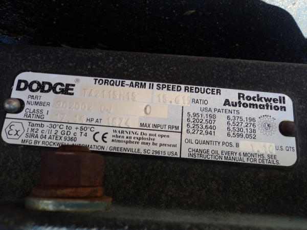 Schlagel Conveyor (PZ9114), Schlagel powerflow conveyor, model 1214, Sabre 7.5 hp electric motor, Dodge Torque-Arm II speed reducer.