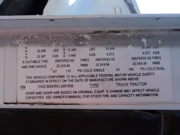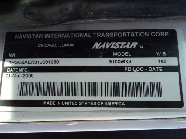 2001 IHC 9100I Truck (PZ9102, Unit 263), Cummins N14 Plus diesel engine (Blown engine), Spicer 10 speed transmission, air conditioning, heat, Am/Fm CD stereo, cruise control, engine brake, power windows, tandem axle, full screw, air ride suspension, 5th wheel, wet kit, 11R22.5 tires, shows 592,623 miles.