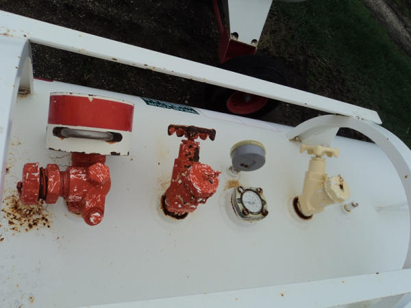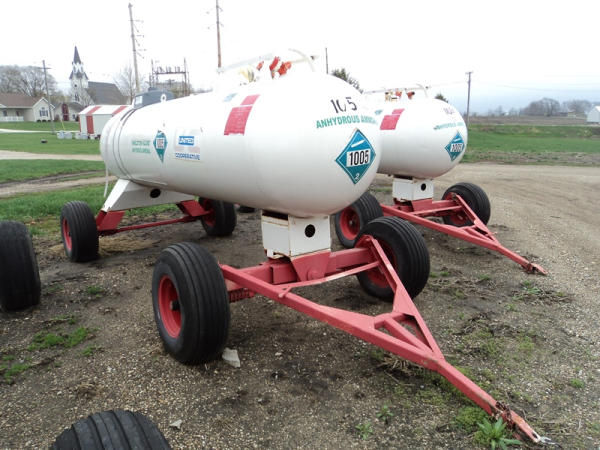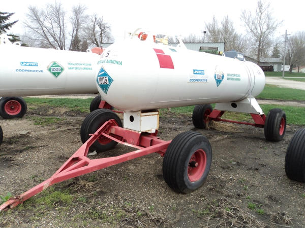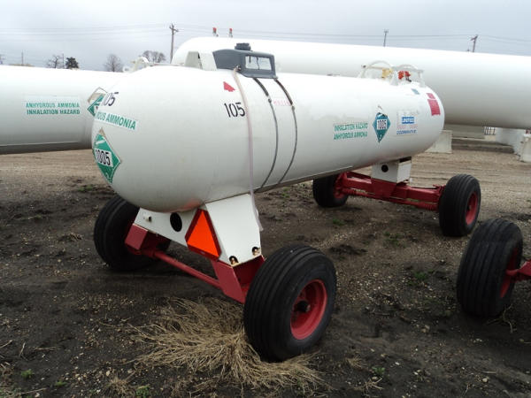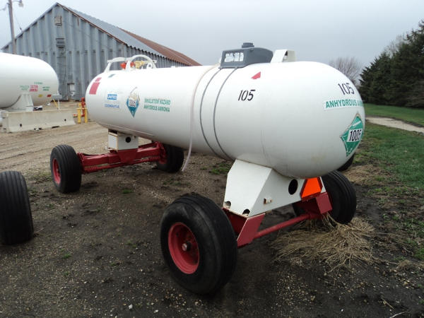 NH3 Nurse Tank (PZ9174, Unit 105) 1000 gallon NH3 nurse tank, top front fill, water tank, 12.5L-15 flotation tires, data plate.