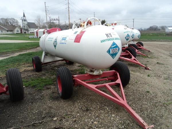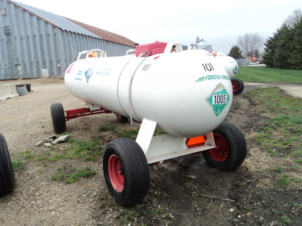 NH3 Nurse Tank (PZ9176, Unit 101) 1000 gallon NH3 nurse tank, top front fill, water tank, 11L-15 flotation tires, data plate.