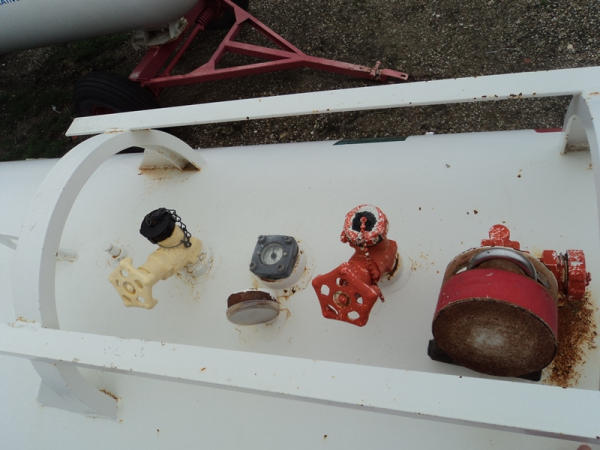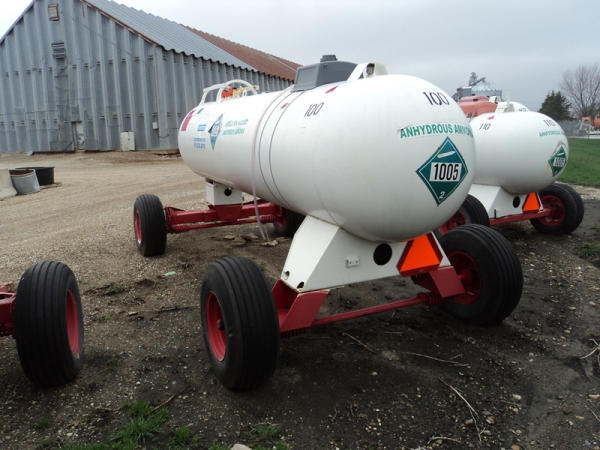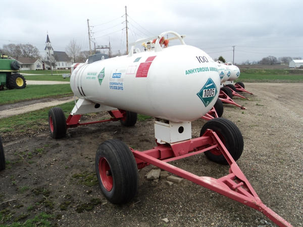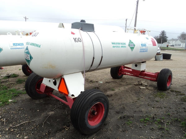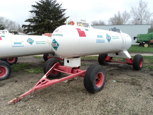 NH3 Nurse Tank (PZ9177, Unit 100) 1000 gallon NH3 nurse tank, top front fill, water tank, 12.5L-15 flotation tires, data plate.