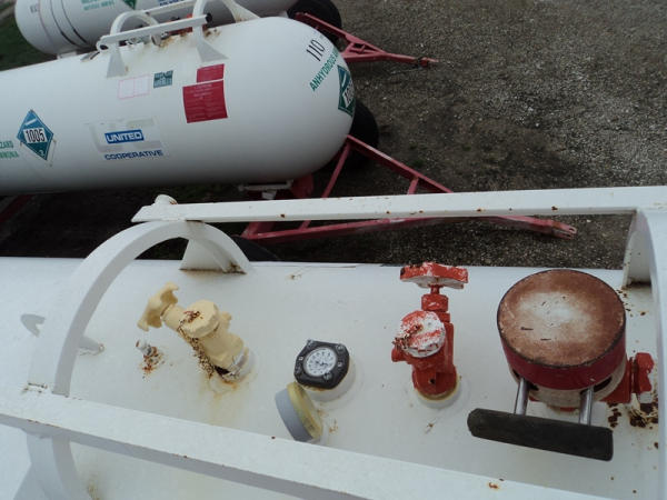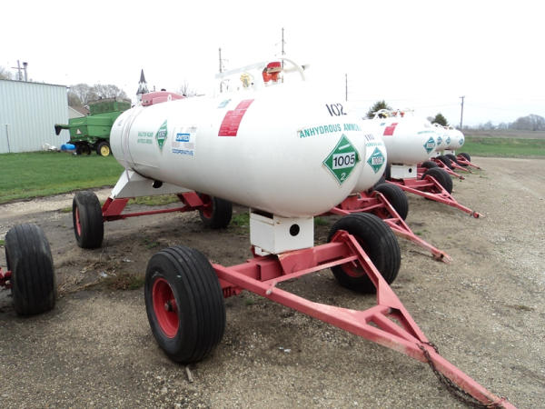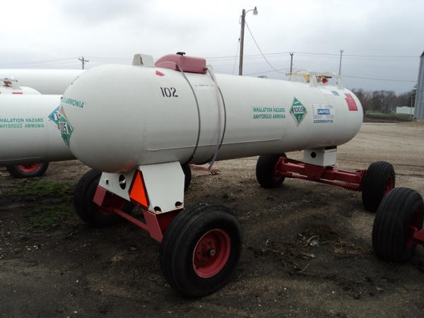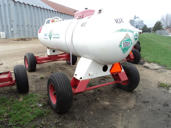 NH3 Nurse Tank (PZ9179, Unit 102) 1000 gallon NH3 nurse tank, top front fill, water tank, 12.5L-15 flotation tires, data plate.
