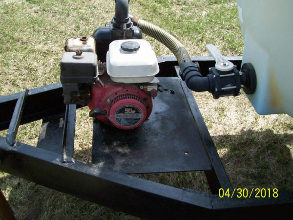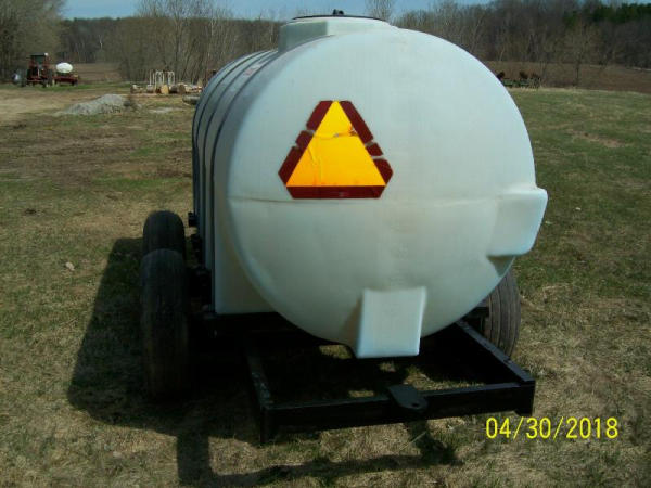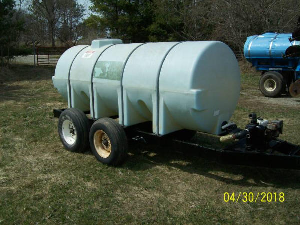 Liquid Nurse Tank (PZ9145), 1000 gallon poly liquid nurse tank, Honda 5 hp gas engine, pump, tandem axle, flotation tires.