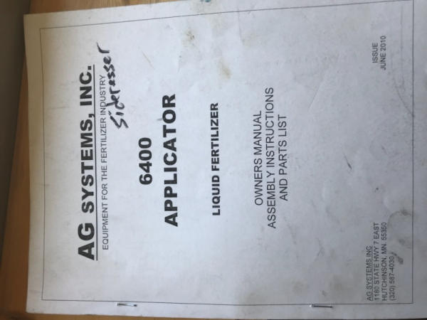 2011 Ag Systems 6400 Liquid Nitrogen Applicator (TH263), 1350 gallon tank, ½ width disconnect/shut off, Raven 440 controller, hydraulic drive pump, can use behind 12 row or 16 row planter, 380/90/R46 tires.