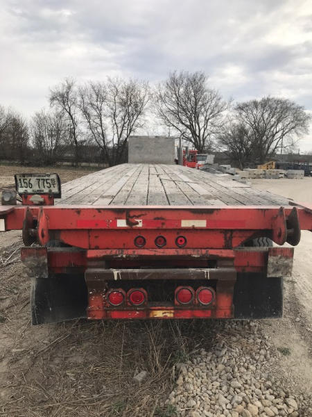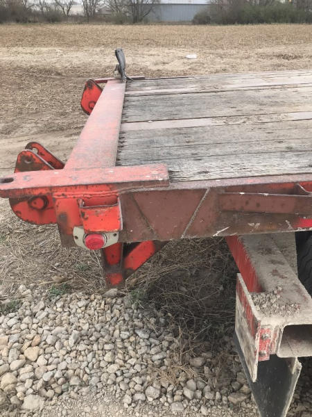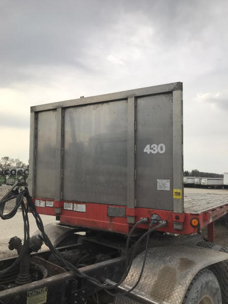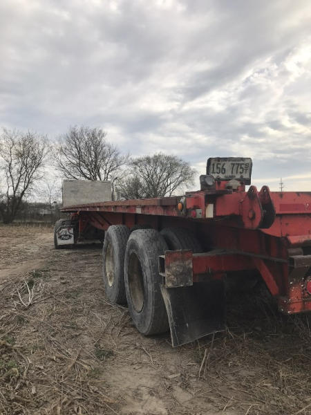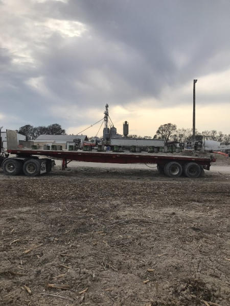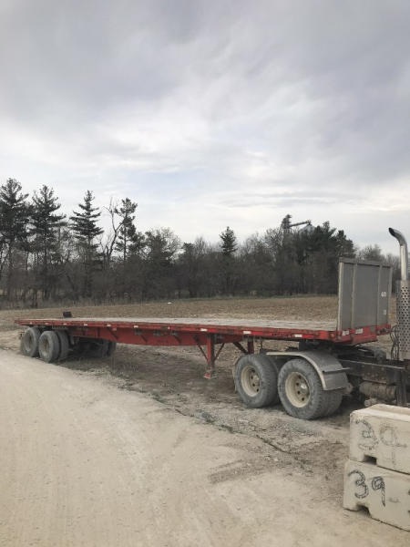 1999 Great Dane Flatbed Trailer (PD766), with piggyback forklift hitch, 43ft long, brakes and drums are good, 80% tires, aluminum bulkheads, trailer has sliding winches on the ditch side, has current safety sticker.