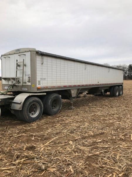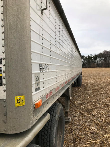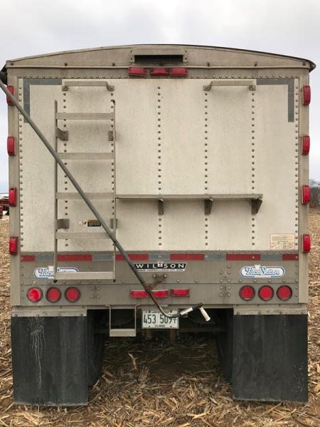 1995 Wilson Hopper Trailer (PD763), 41', tandem axle, air ride suspension with pressure gauge and dump valve, 50% 24.5 virgin tires, outer aluminum wheels, unit # H25, good tarp, new landing gear, rear beams replaced a few years ago, brakes and drums are 50%.