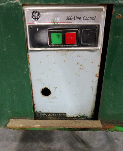 Portable Horizontal Cardboard Baler (KMK525), General Electric 300-line control, 7.5 hp., 208 v., 3 ph., push button start and stop, electrical plug 30 a. 250 v., 30, portable, 4 heavy duty casters, lift top feeder, bale pusher, rear bale release.