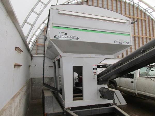 Parker Seed Chariot 3620 Seed Tender (NP6617), triple axle, roll tarp, Honda GX270 gas motor, electric start, auger remote hand controls, Avery Weigh-Tronix Model 640XL scale head, ST235/85R16 tires, bumper hitch.