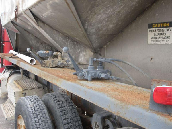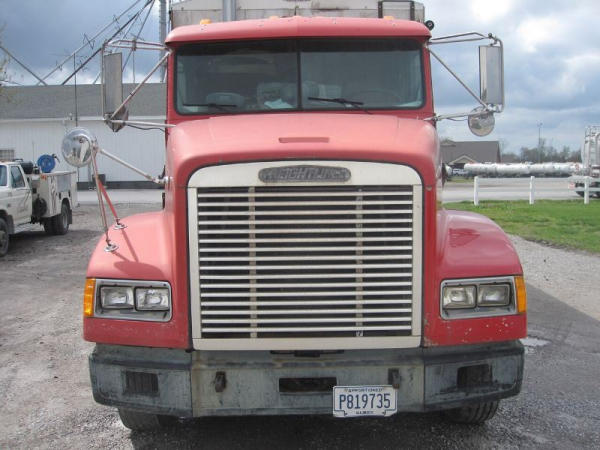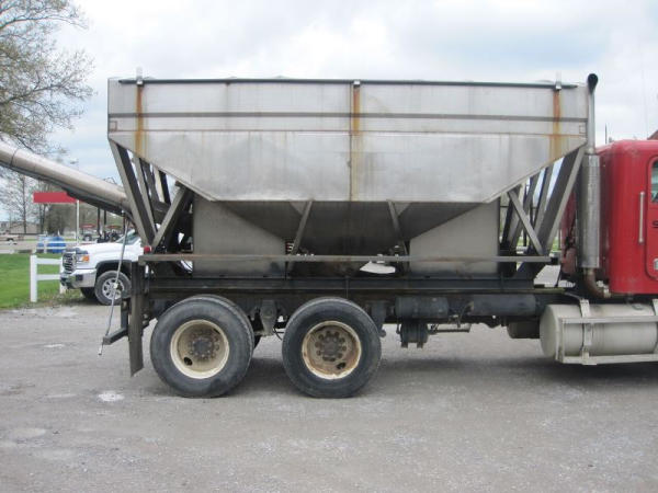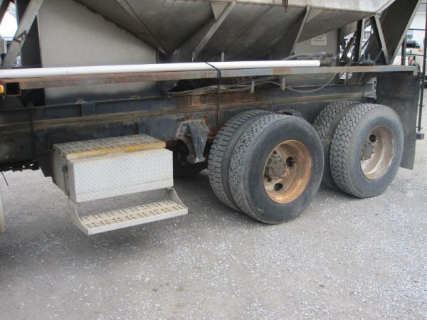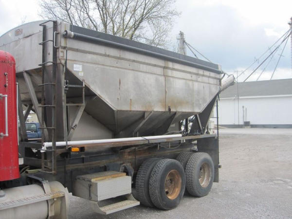 1995 Freightliner Dry Tender Truck (PZ9148, Unit 7851), Cummins M11 diesel engine, 9 speed transmission, air conditioning, heat, Am/Fm CD stereo, cruise control, tandem axle, full screw, 16 ton stainless steel dry tender box, rear discharge auger, all hydraulic, roll over tarp, shows 1,008,218 miles.