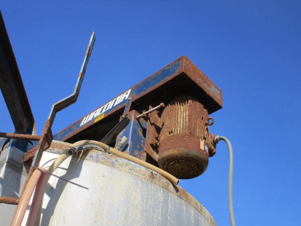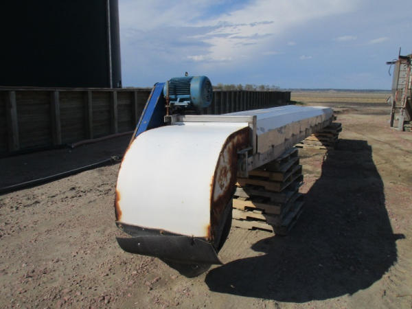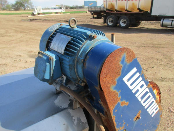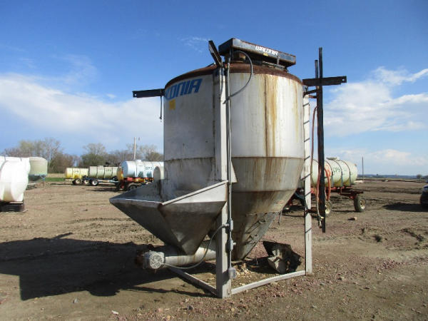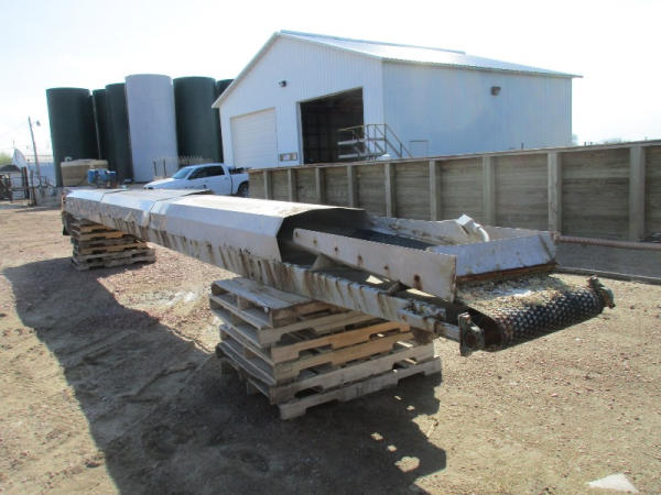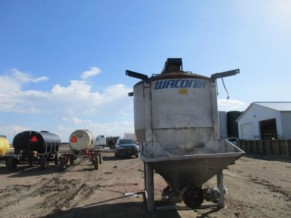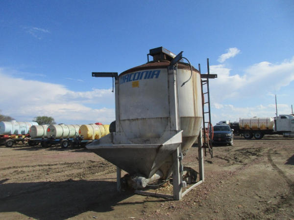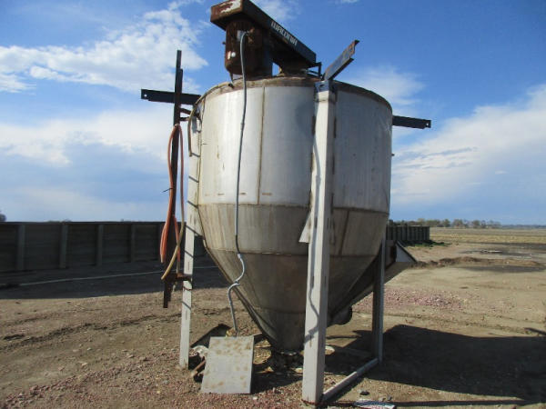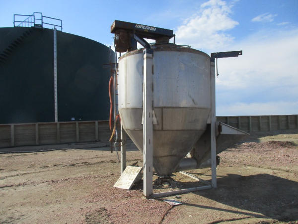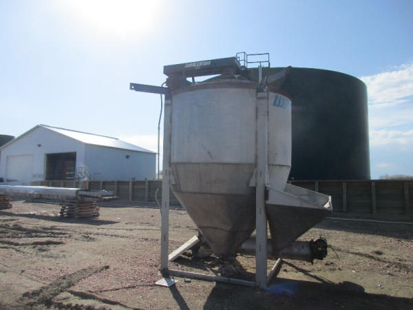 Waconia Blender (DR8884), 8 ton stainless steel vertical dry fertilizer blender, top drive motor, bottom feed auger has been rebuilt, 32' stainless steel loadout conveyor, NO SCALE HEAD.