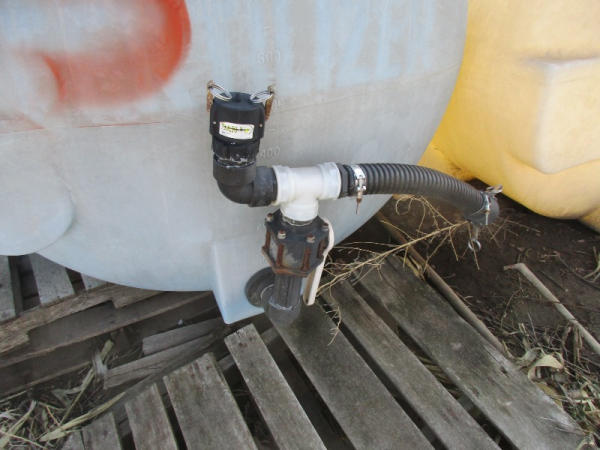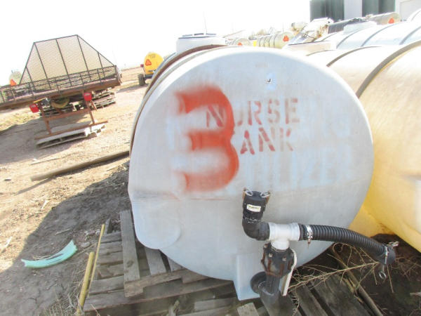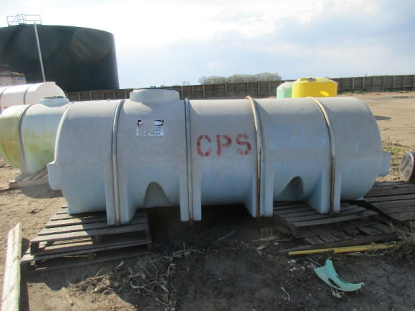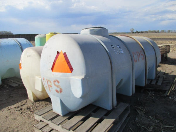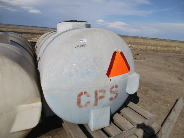 Crown Poly Tank (DR8889), 1000 gallon crown poly liquid tank, has tie down hoop straps, Banjo valve.