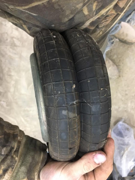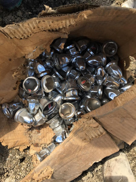 Truck Parts (DR8905), assorted truck parts, aluminum deck plate, Goodyear air suspension air bags, chrome nut covers, hanger bearing, PTO switch, shrome hub covers.