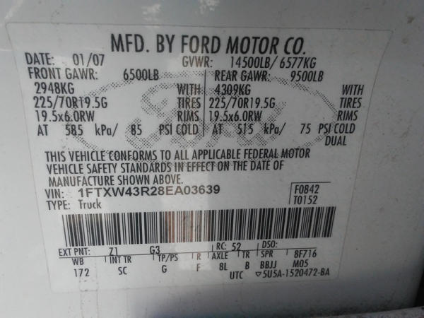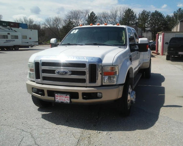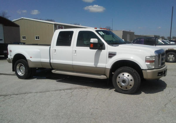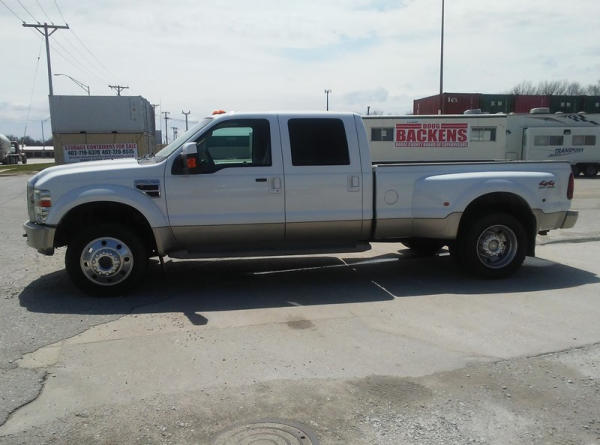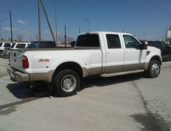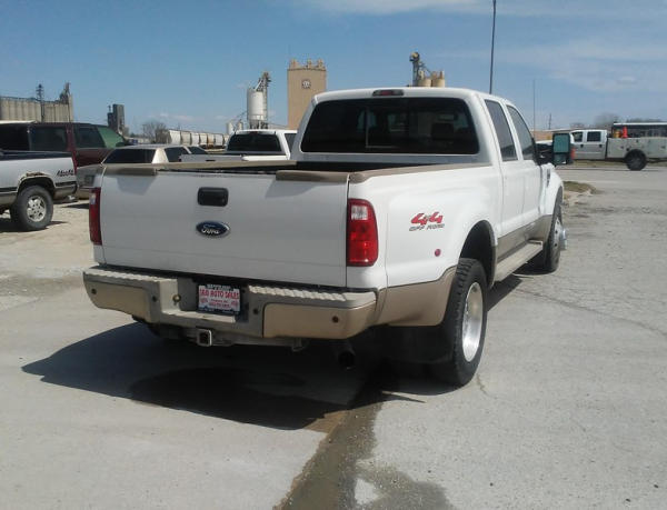 2008 Ford F-450 Super Duty (DL258), King Ranch, 6.4L V8 turbo diesel engine, 4WD, automatic transmission, AM/FM radio w/ CD player, power windows, power locks, power & heated seats, cruise control, running boards, power fold mirrors, 5000 miles on new 225/70/R19.5 tires, 5000 miles on new: Ford Crate Motor, Ford fuel injectors, Ford lift pump, mini max programmer, banks exhaust, hide-a-ball, goose neck ball, shows 204,110 miles.