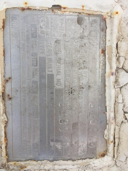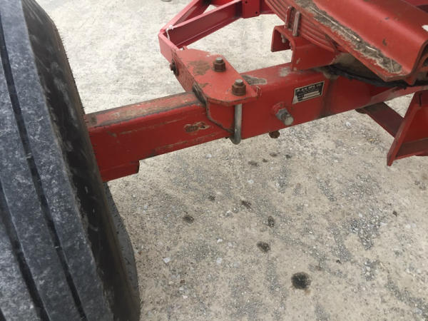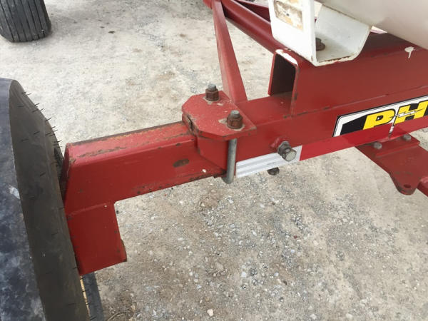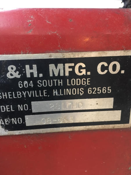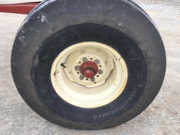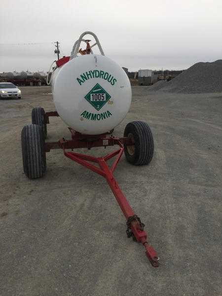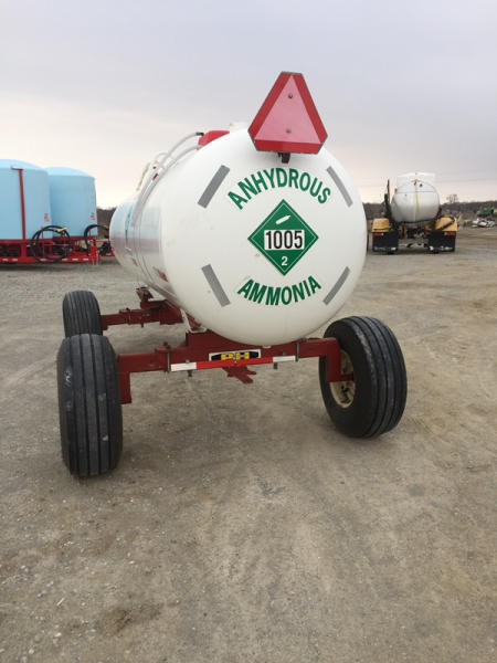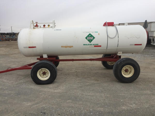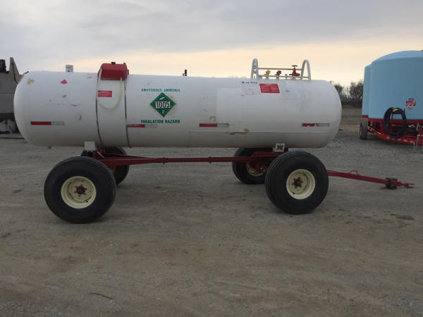 NH3 Nurse Tank (PZ9203, Unit 90), 1999 American Tank & Welding 1450 gallon NH3 nurse tank, National Board & S/N 918978, top front fill, poly water tank, P & H model 2817HD 5th wheel running gear, S/N 08-553, adjustable axles, rear hitch, 14L-16.1 SL flotation tires, data plate.