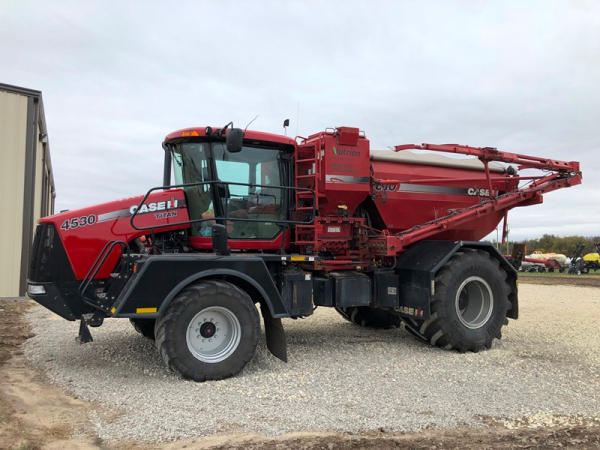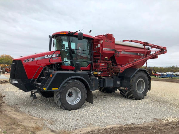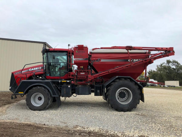 2013 CaseIH Titan 4530 Dry Floater (NP7460, Unit 76901), Case FPT 8.7L diesel engine, Allison automatic transmission, heat, air conditioning, Am/Fm CD radio, power mirrors, leather driver seat & buddy seat, CaseIH Flex-Air 810 dry air flow system (S/N TCT033972), 70' boom, Agri-Cover electric roll tarp, 750/50R26 front tires, 1050/50R32 rear tires, Overview rear backup camera, Raven Viper Pro, shows 6,012 hours.