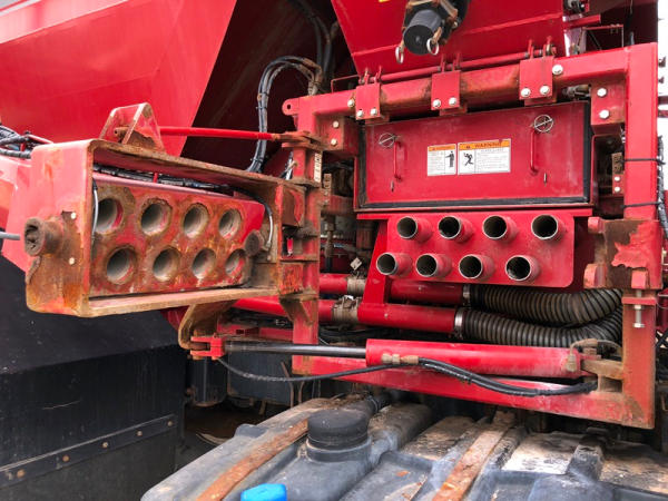 Notes: Repairs done to this machine include: New rear end (recent), went through the final drives, new radiator, both new hydraulic function blocks & valves, new DEF injector, new water pump, new belt tensioners and pulleys, front crank shaft seal, new drag link & tie rod ends, new power steering clyinder tie rod ends, new rear axle seals & new brakes, new brake slack adjusters, new rear tork arms & bushings, new rear leaf springs, new rear tires, replaced majority of the hydraulic hoses, new boom product deflectors, new RH product belt rollers & bearings, new RH boom venturi, new motor and bearings on 8" auger, new supplement gandy wheels and new motors, both new in-and-out boom cylinders, new A/C compressor, Lincoln auto grease was just gone through.