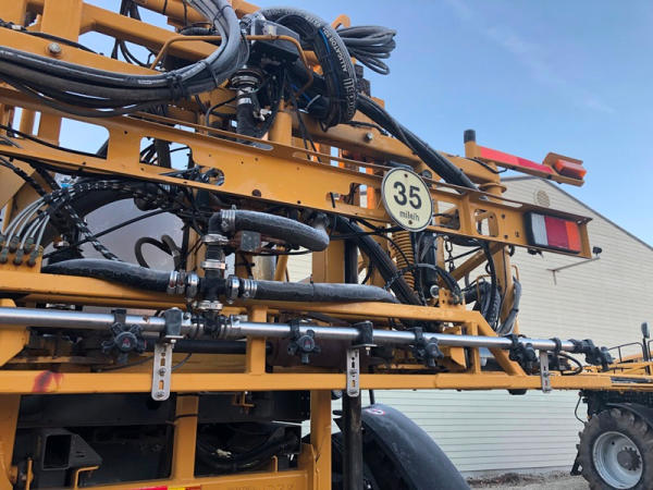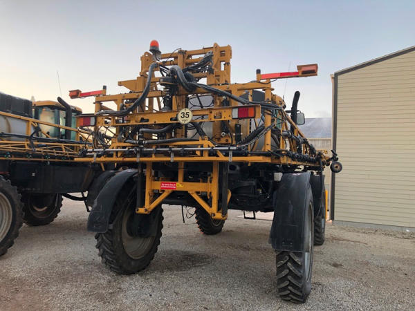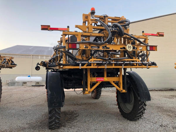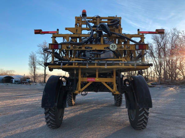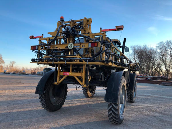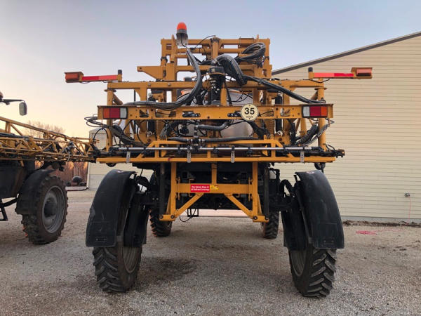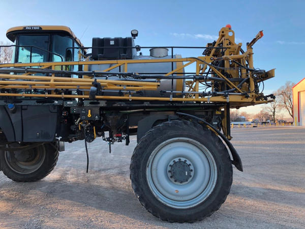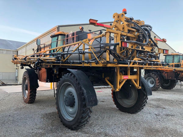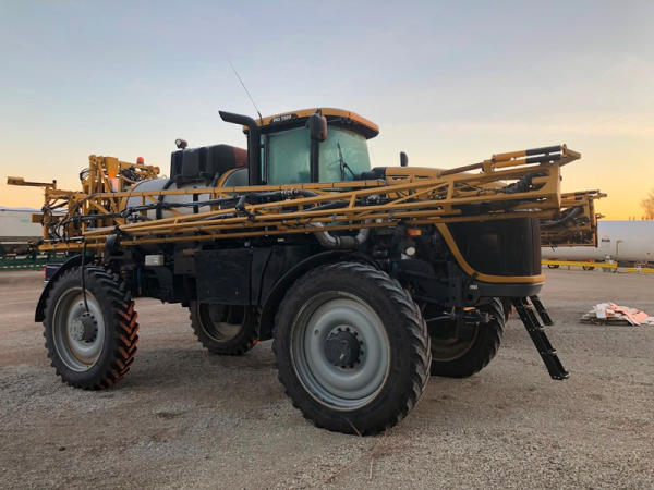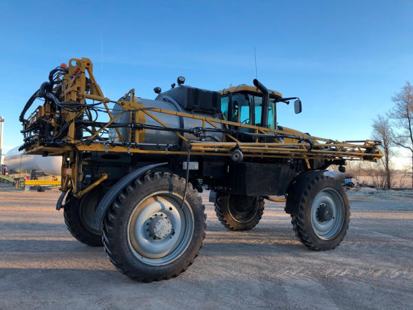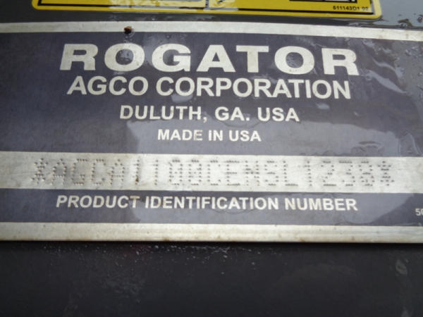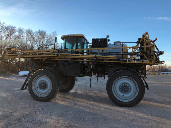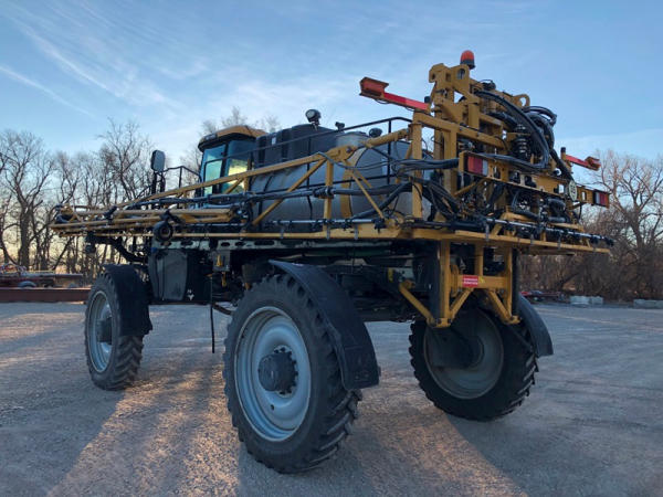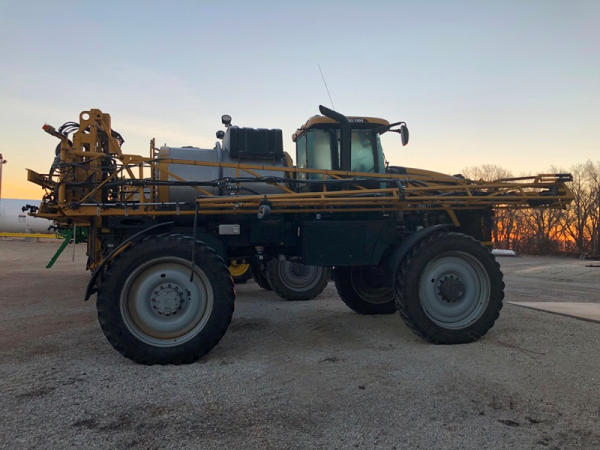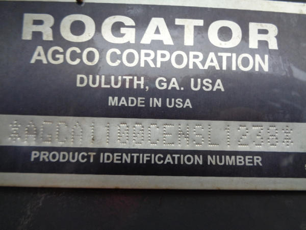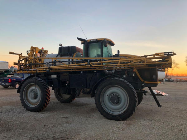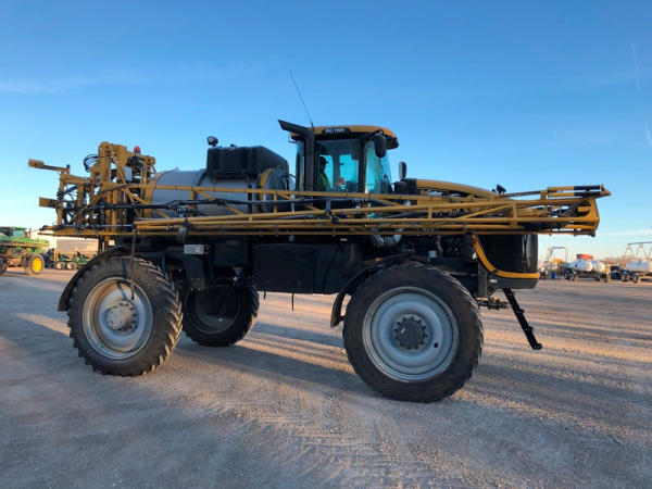 2014 RoGator RG1100 Sprayer (NP7462, Unit 02291), SisuTronic diesel engine, hydrostatic transmission, heat, air conditioning, Am/Fm CD radio, leather seat, 1,050 gallon stainless steel liquid system, 100' boom, 5-way nozzle bodes, top poly rinse tank, poly chemical inductor, pump, 380/90R46 row crop tires, lightbar, Raven Viper Pro, shows 3,953 hours.