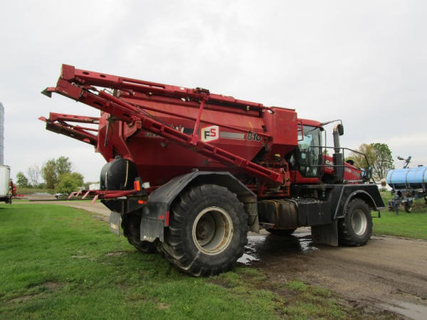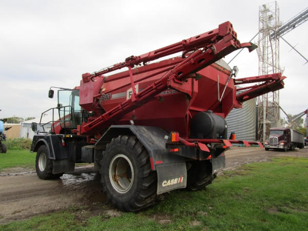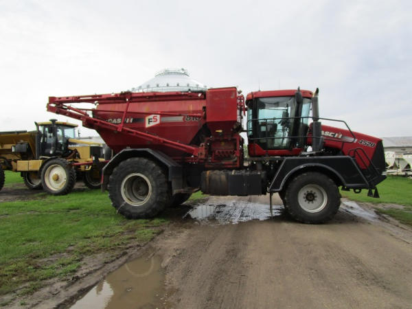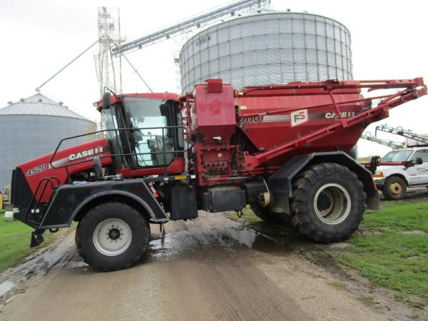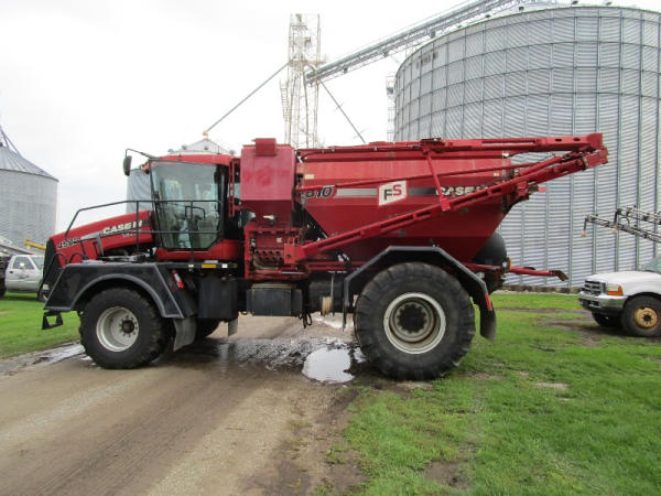 2008 Case IH 4510 (DR0350 Unit 2778), diesel engine, Allison automatic transmission, Case 810 Flex Air dry flow system, 70' boom, dual micro ingredient bins, electric tarp, Raven Viper Pro controller, Raven auto steer, rear view camera, on board pressure washer, cab heat/air conditioning, AM/FM CD radio, Michelin 750/45R26.5 front tires, 1050/50R32 rear tires, shows 5867 hours.
