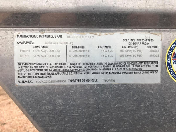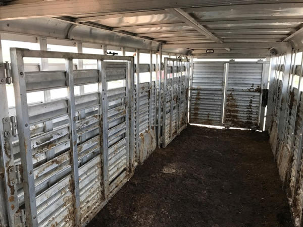 2011 Keifer Built (DR0496), 20' aluminum livestock trailer, street side access door, (2) center gates, rear swing door, tandem axle.