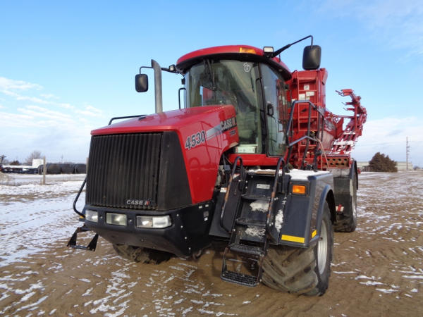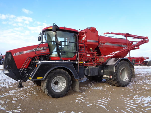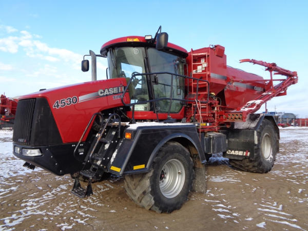2013 CaseIH Titan 4530 Dry Floater (NP7655), 415HP 8.7L FPT diesel engine, 6 speed Allison automatic transmission, heat, air conditioning, Am/Fm radio, power mirrors, CaseIH Flex-Air 810 dry air flow system (S/N YCT033531), triple product delivery system, 70' boom, Agri-Cover electric roll tarp, HID stadium field lights, 750/50R26 front tires, 1050/50R32 rear tires, Viper Pro rate controller w/ variable rate software, Raven GPS receiver and 600ic lightbar, SmarTrax autosteer, shows 4,909 hours.