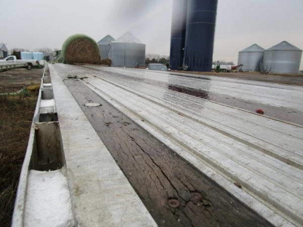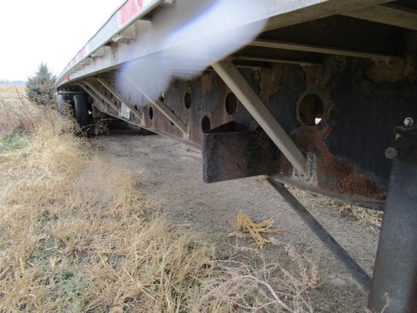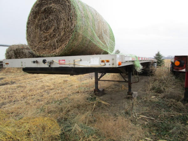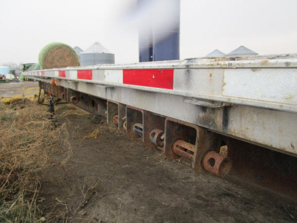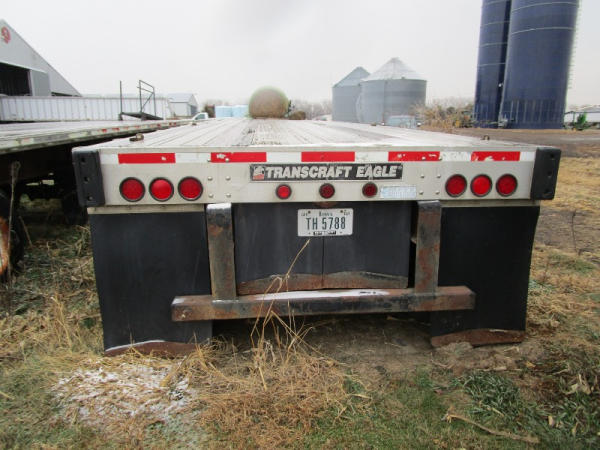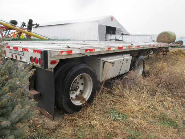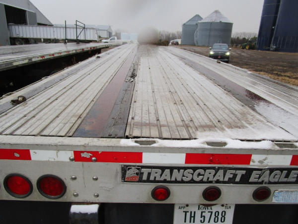 2000 Transcraft Eagle (DR979), 45' X 102" aluminum flatbed, spread axle, air ride suspension, frame mounted storage boxes, 24.5 tires, all aluminum wheels, side winch boxes.