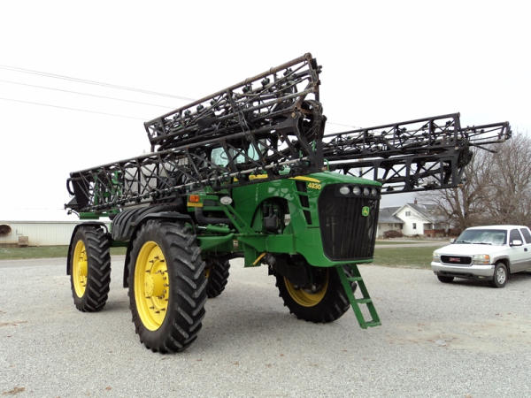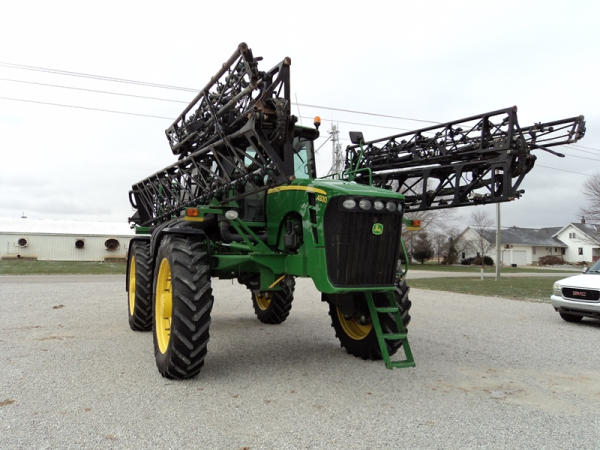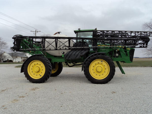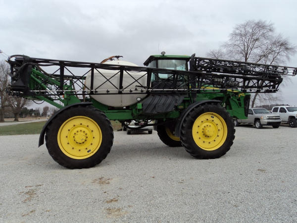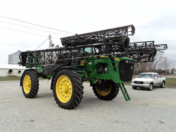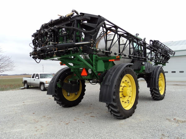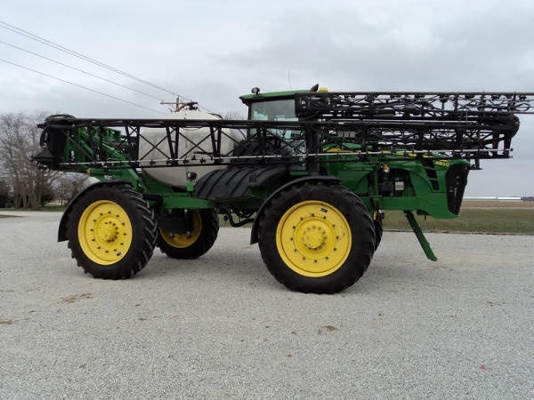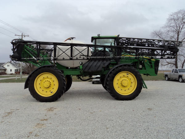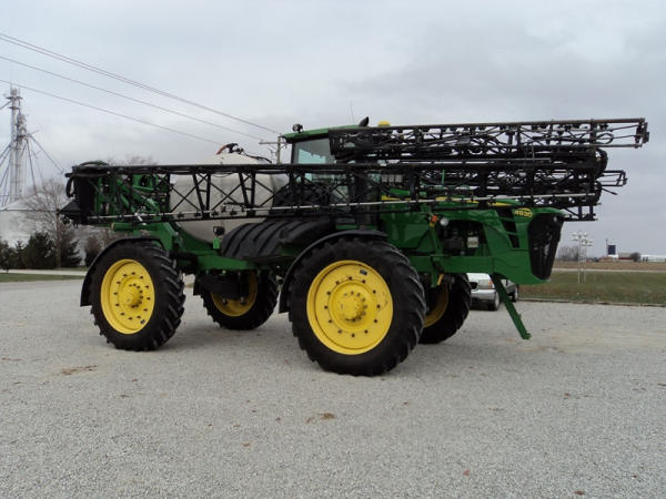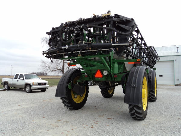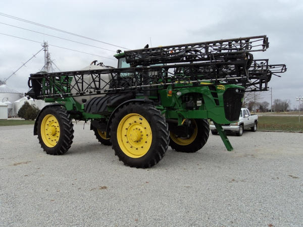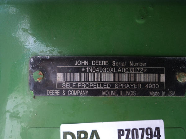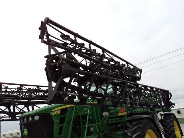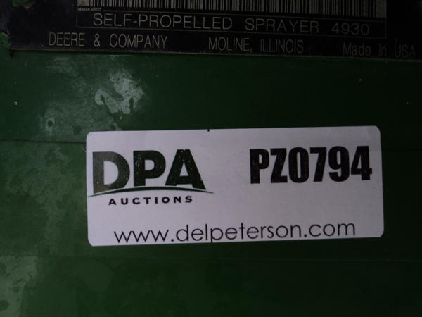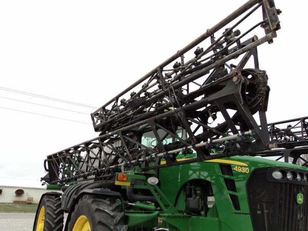 2011 John Deere 4930 Sprayer (PZ0794), John Deere diesel engine, hydrostatic transmission, air conditioning, heat, Am/Fm CD stereo, becon light, 1200 gallon stainless steel liquid system, 120' boom, stainless steel chemical inductor, Michelin Yieldbib VF 480/80R50 tires, StarFire 3000 globe, John Deere GreenStar 3 monitor, shows 4166 hours.