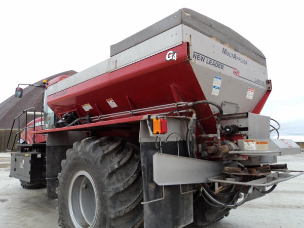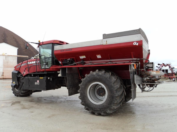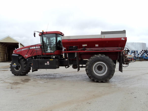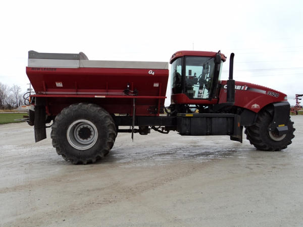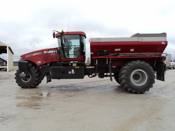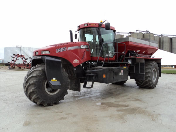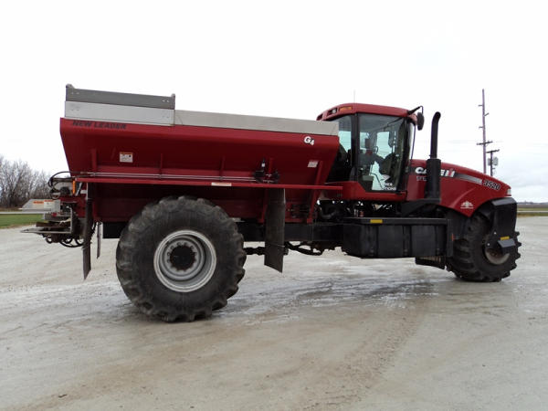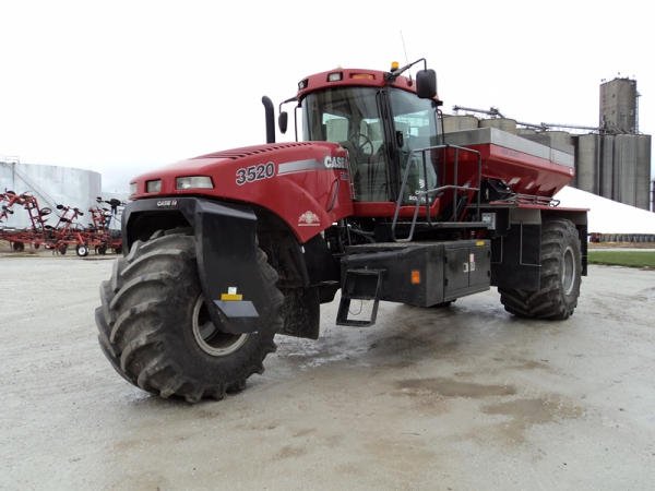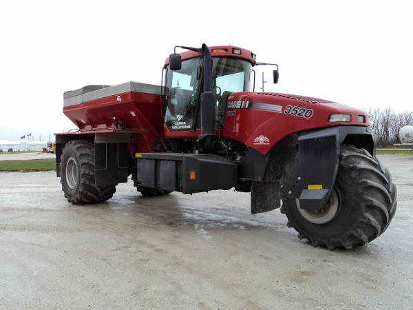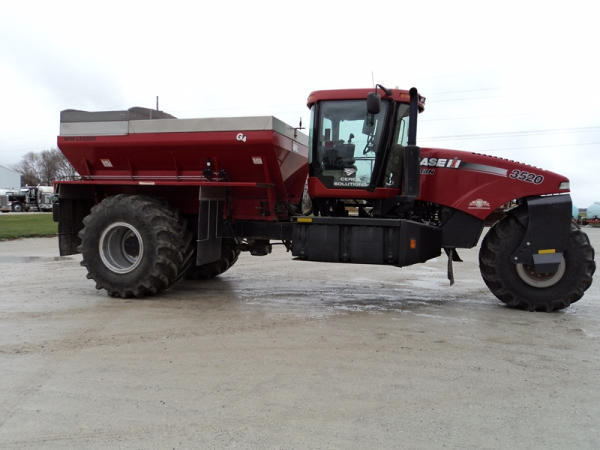 2011 CaseIH Titan 3520 Dry Floater (PZ0763), diesel engine, Allison automatic transmission, air conditioning, heat, Am/Fm CD stereo, becon light, New Leader L4000 G4 - 14 stainless steel dry spreader box (S/N 132648), New Leader MultApplier - 5 stainless steel insert (S/N 132649), Good Year Optiterra 1000/50R25 tires, Raven monitor, shows 2890 hours.
