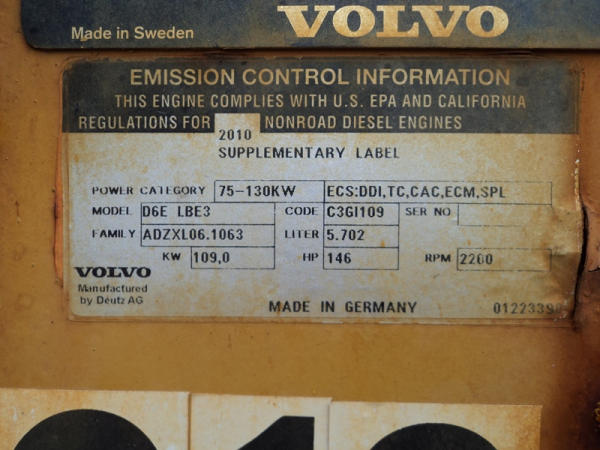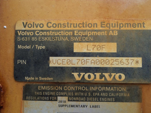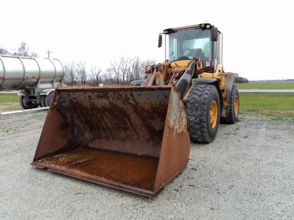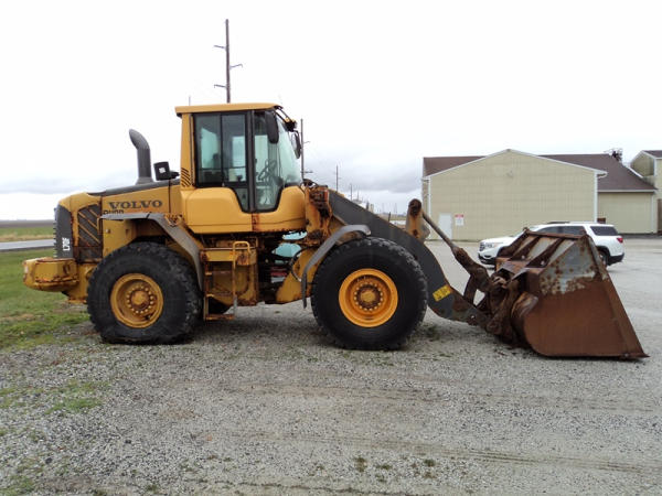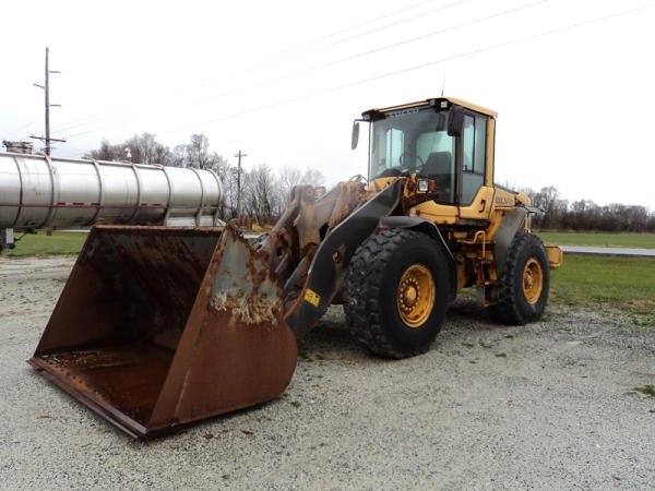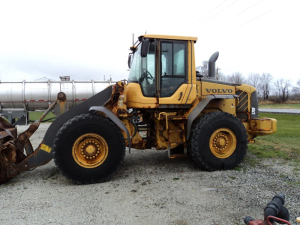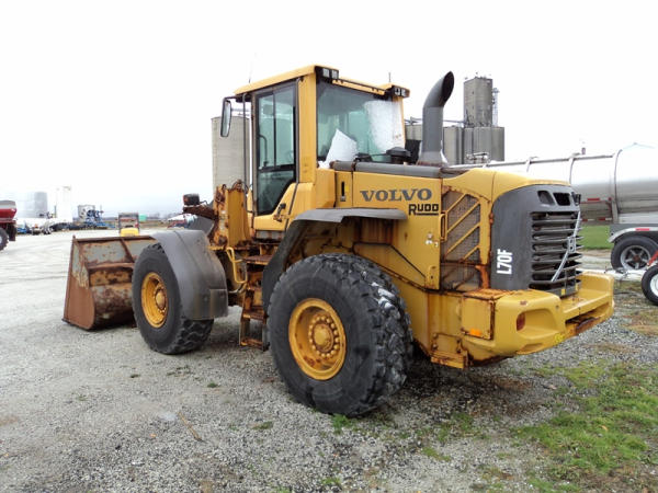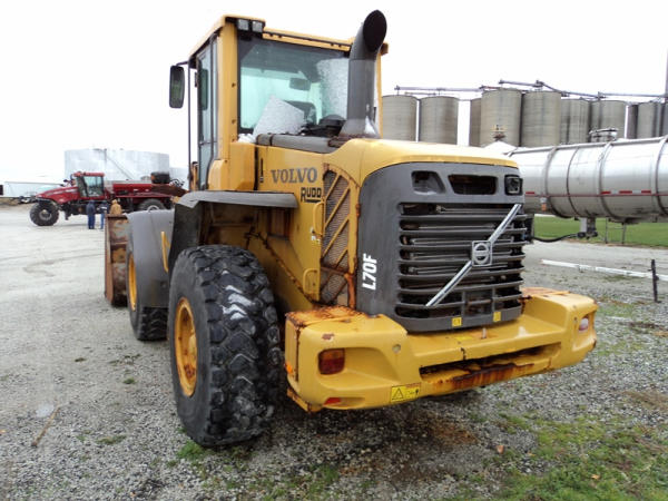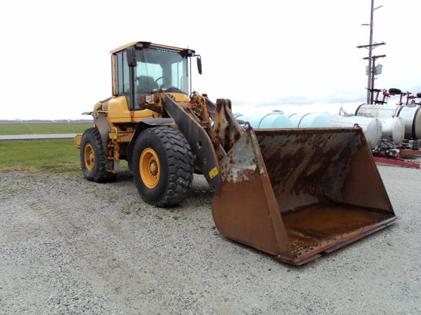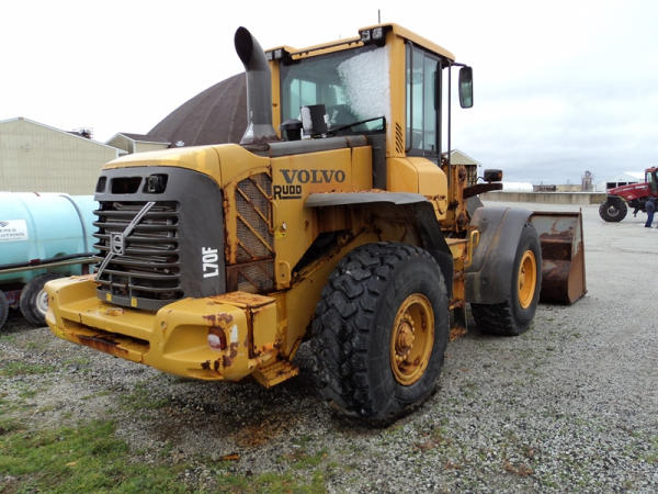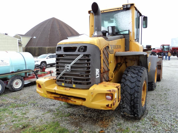 Volvo L70F Loader (PZ0762, Unit 210), diesel engine, shuttle shift transmission, air conditioning, heat, Am/Fm CD stereo, cab, lights, 103" bucket, Michelin 20.5R25 tires, shows 2418 hours.