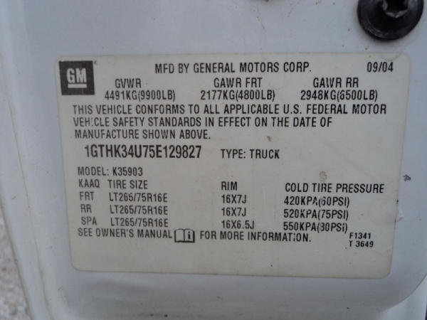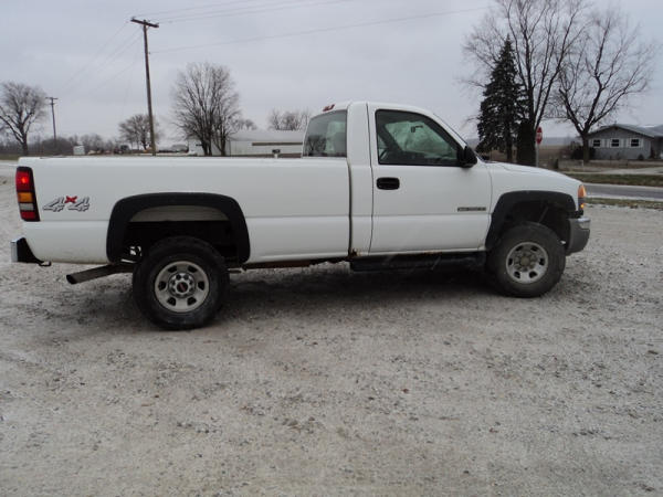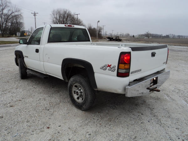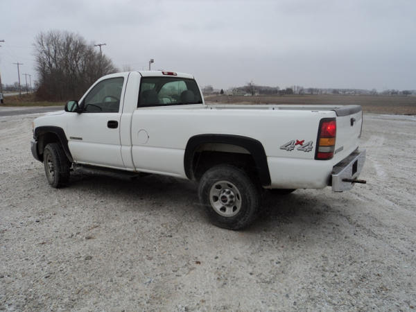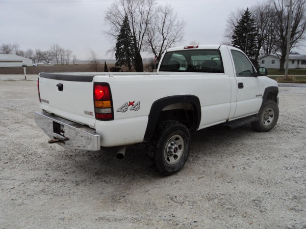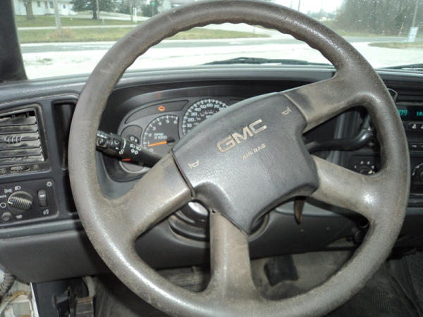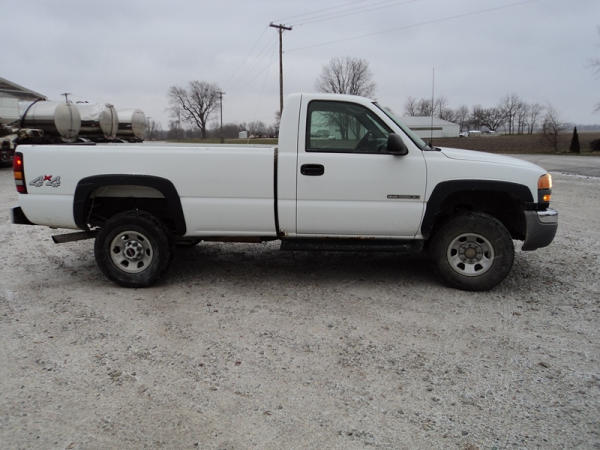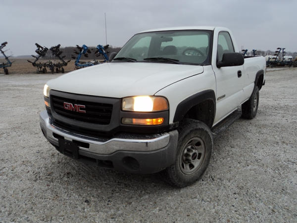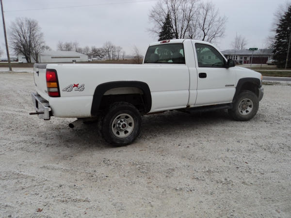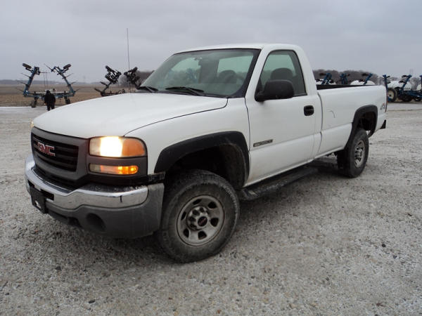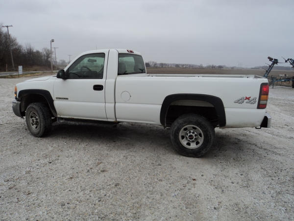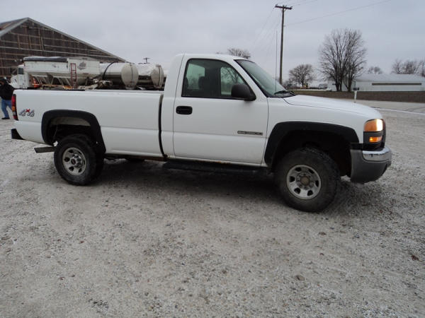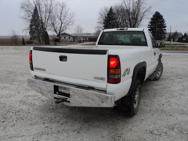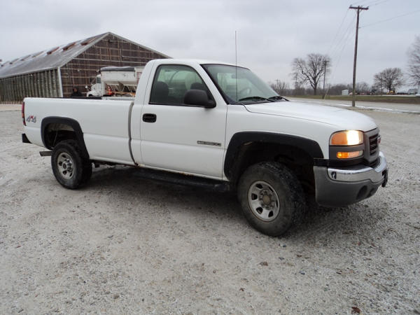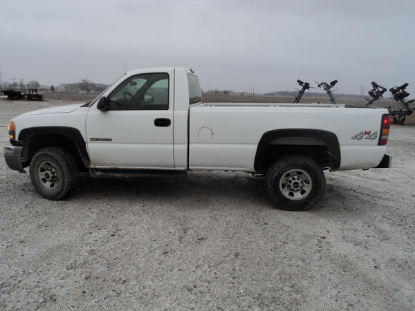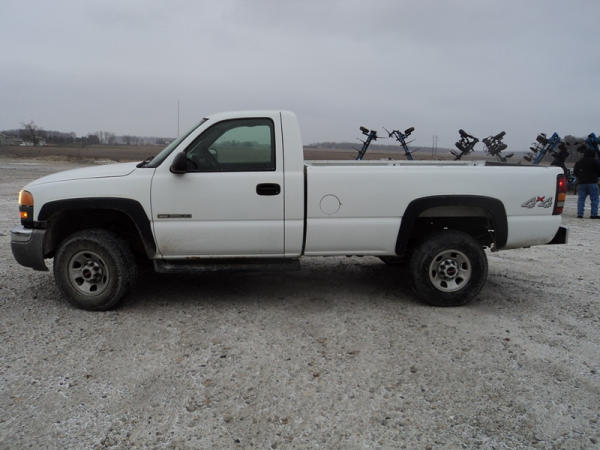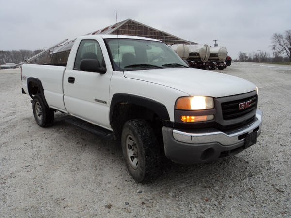 2005 GMC 3500 Pickup (PZ0787, Unit 879), 4x4, 6.0L gas engine, automatic transmission, air conditioning, heat, Am/Fm CD stereo, cruise control, running boards, 5th wheel ball, LT235/85R16 tires, shows 215,145 miles.