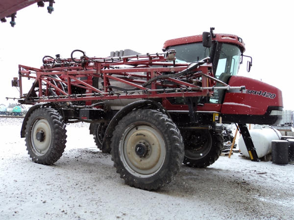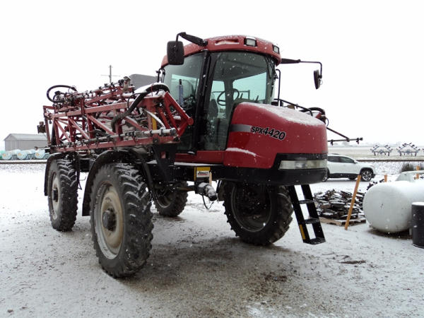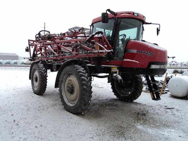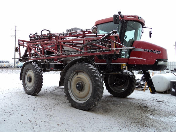 2007 CaseIH SPX 4420 Sprayer (PZ0793, Unit 901), diesel engine, hydrostatic transmission, air conditioning, heat, Am/Fm CD stereo, becon light, 1200 gallon stainless steel liquid system, 120' boom, top poly rinse tank, front & rear fill, Titan & Mitas AC85 380/90R46 tires, Raven SmarTrax, shows 4087 hours.