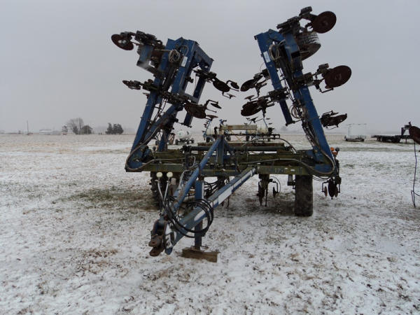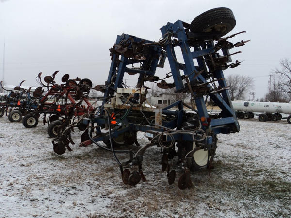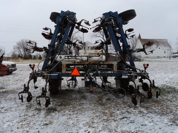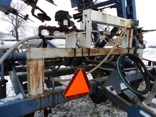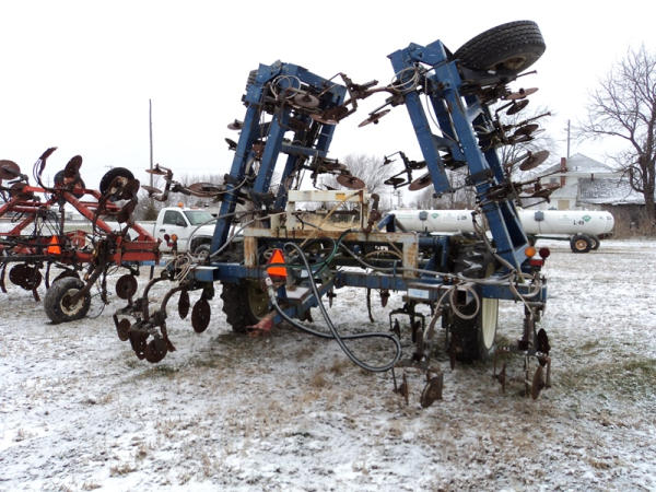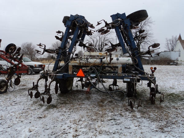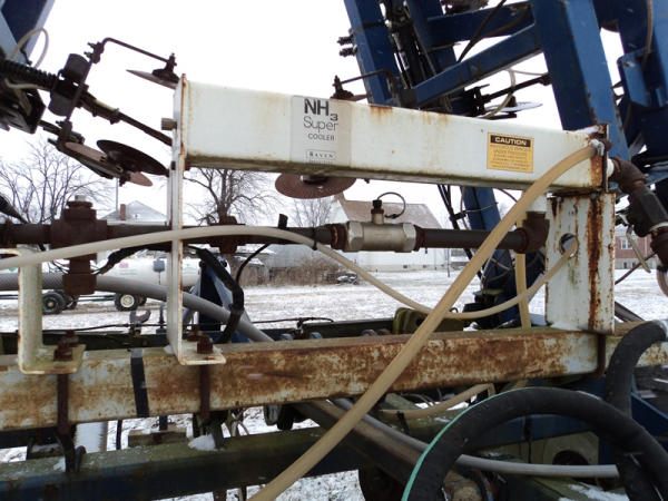 Blu Jet Tool Bar (PZ0792), Blu Jet 17 knife pull type tool bar, coulters, double disc sealers, Raven Super cooler, hydraulic wings, 12.4-38 tires, rear hitch.