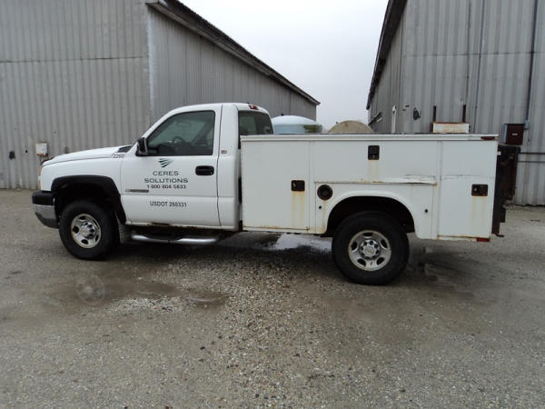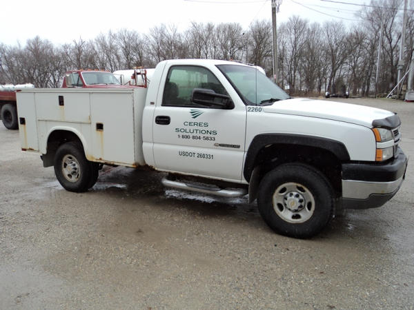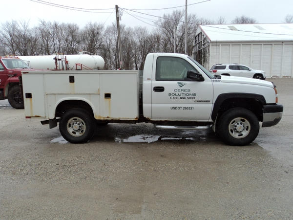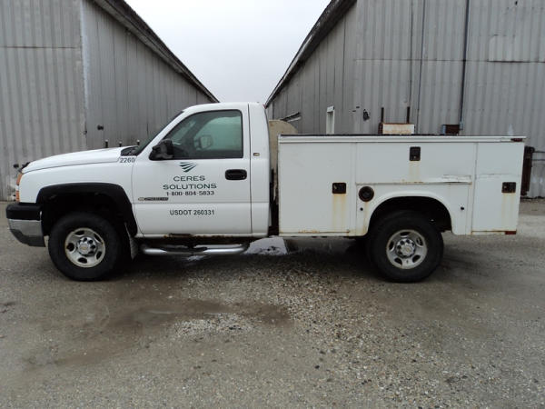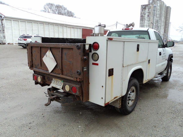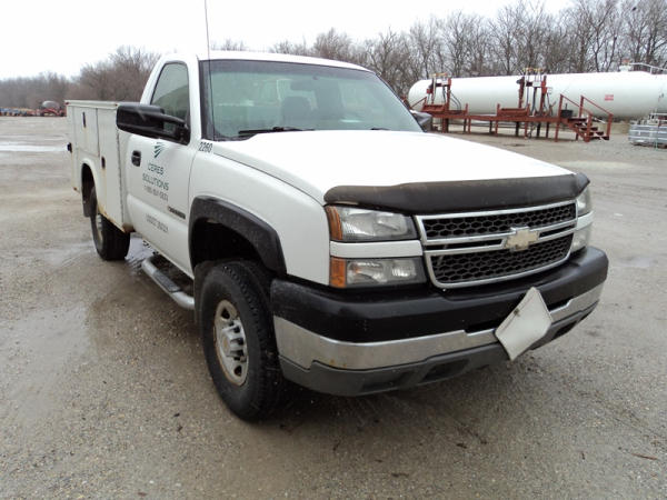 2005 Chevrolet 2500HD Utility Pickup (PZ0759, Unit 2260), 4x4, 6.0L gas engine, automatic transmission, air conditioning, heat, Am/Fm radio, cruise control, running boards, Knapheide utility body, Tommy lift gate, LT265/75R16 tires, shows 260,253 miles,.