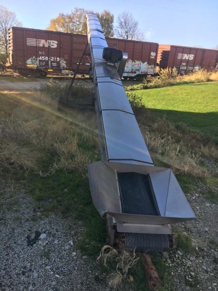 Layco Conveyor (PZ0874), Layco 50' stainless steel belt conveyor, electric motor, portable.