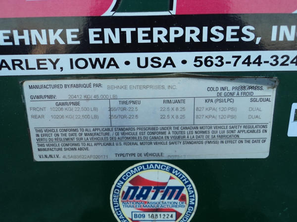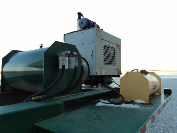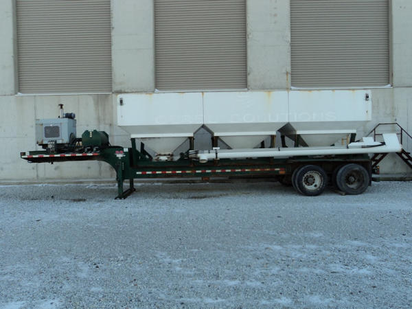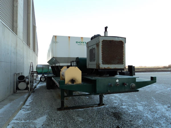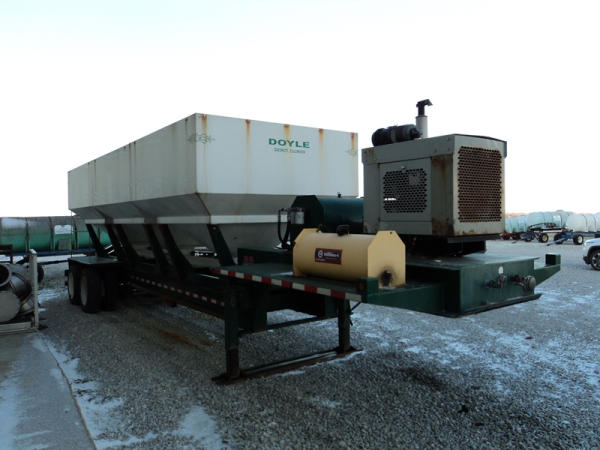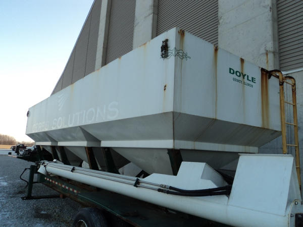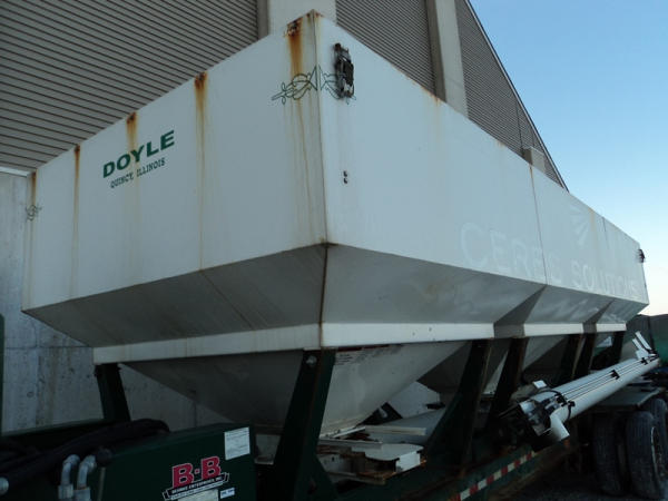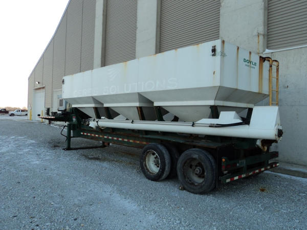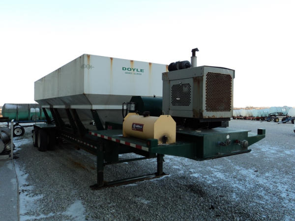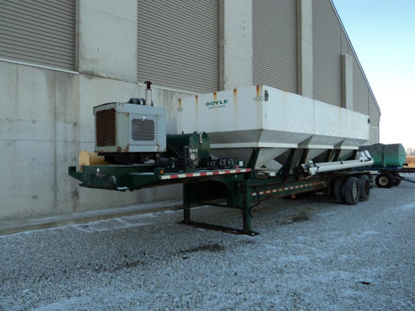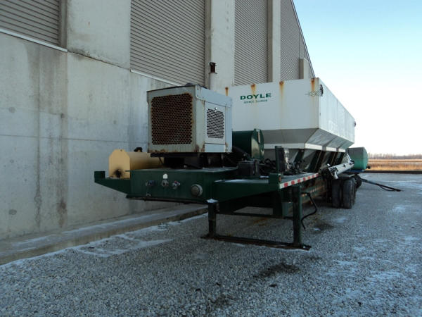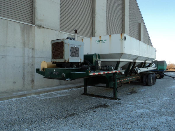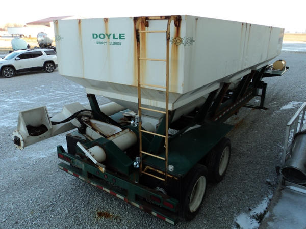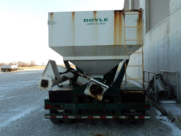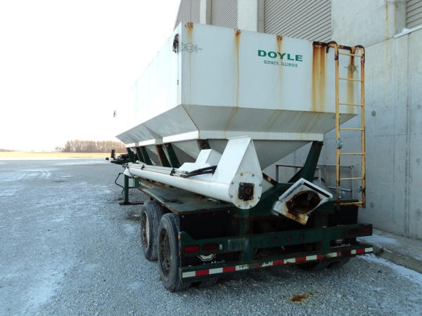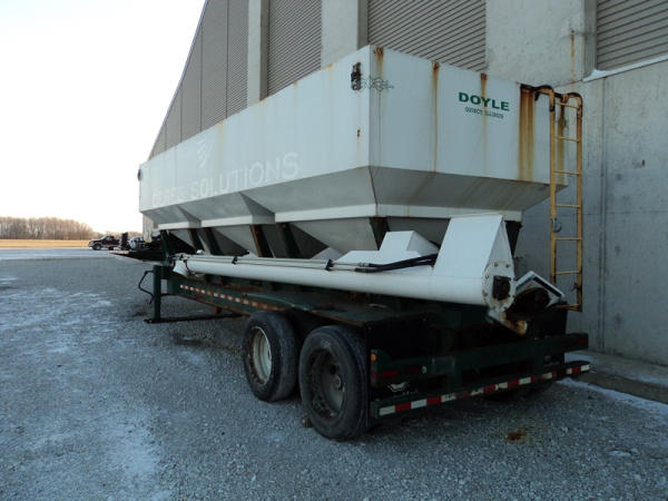 2010 Doyle Dry Tender Trailer (PZ0814), 2010 Doyle 24 ton dry tender trailer, Kabota self contained diesel engine, shows 511 hours, side discharge auger, all hydraulic, 2010 B&B tandem axle trailer, 255/70R22.5 tires.