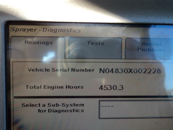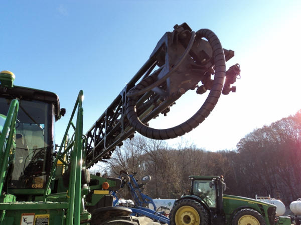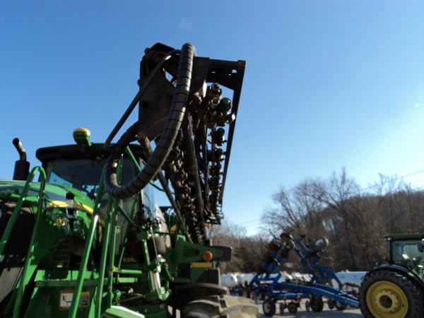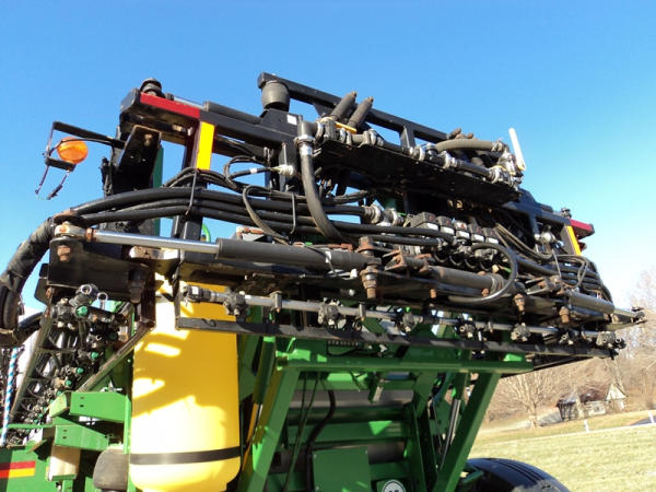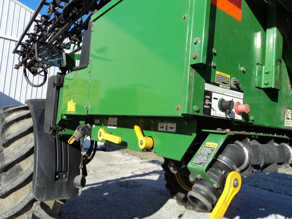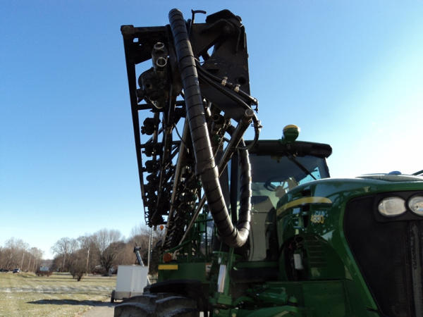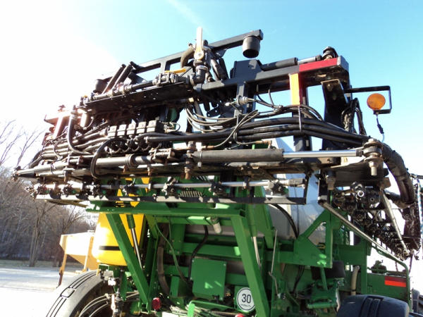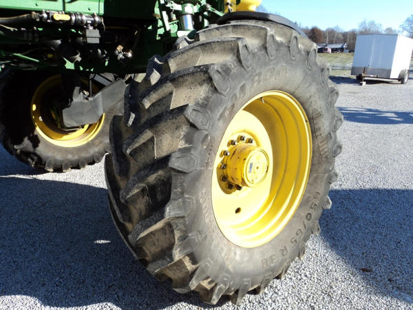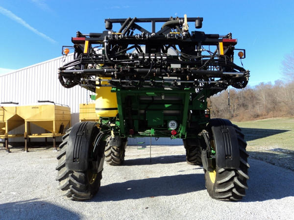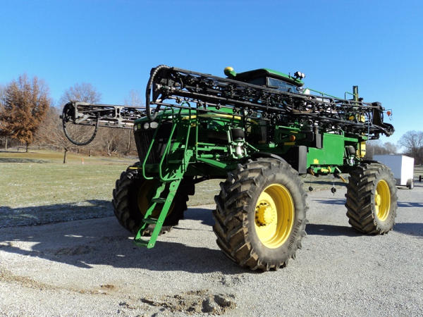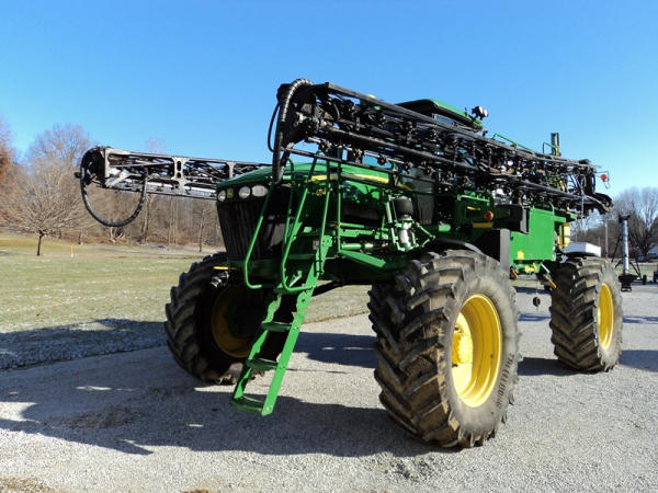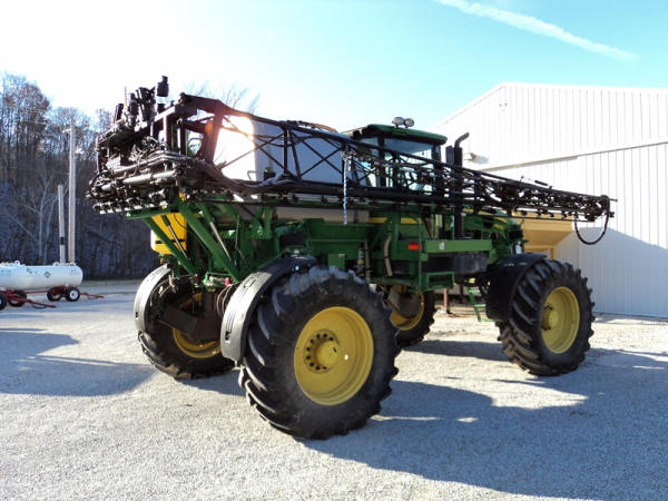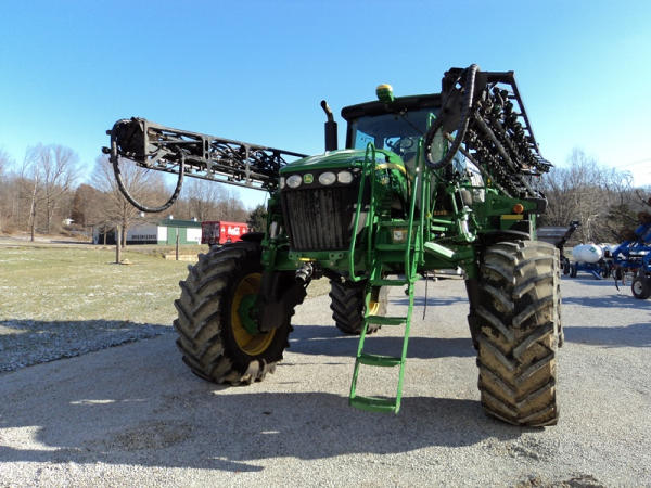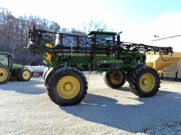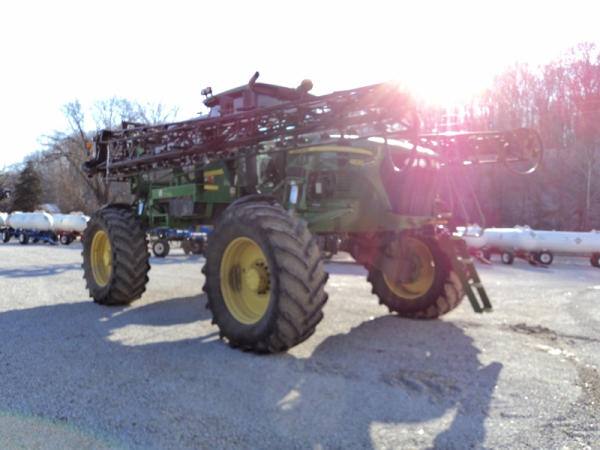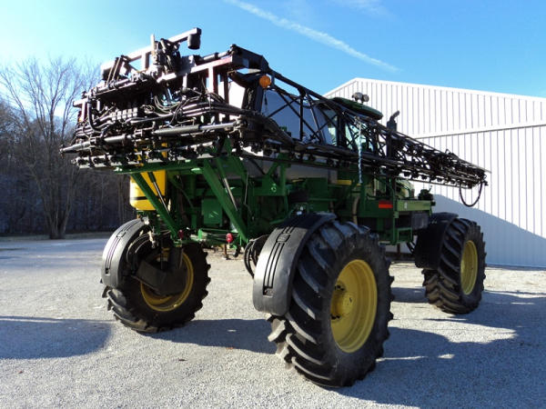2007 John Deere 4830 Sprayer (PZ0825, Unit 6348), John Deere diesel engine, hydrostatic transmission, air conditioning, heat, Am/Fm CD stereo, 1025 gallon stainless steel liquid system, 100' boom, foam marker, poly foam marker tank, front fill, Trelleborg TM800 650/65R38 flotation tires, Good Year Ultra Sprayer 380/90R46 tires, StarFire iTC globe, John Deere monitor, shows 4530 hours.