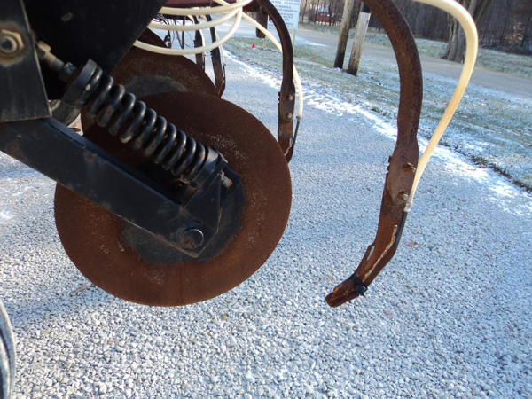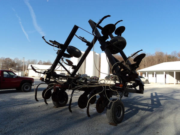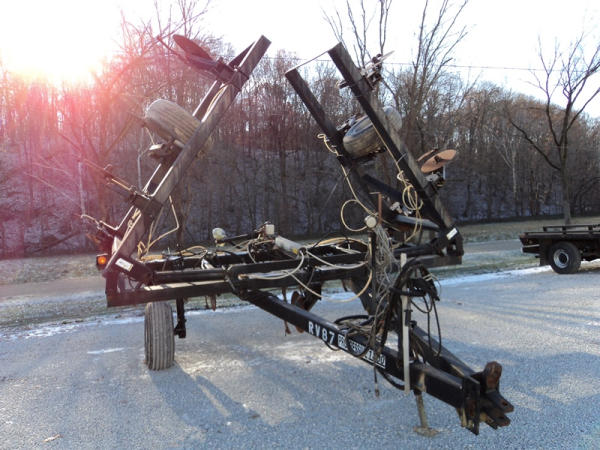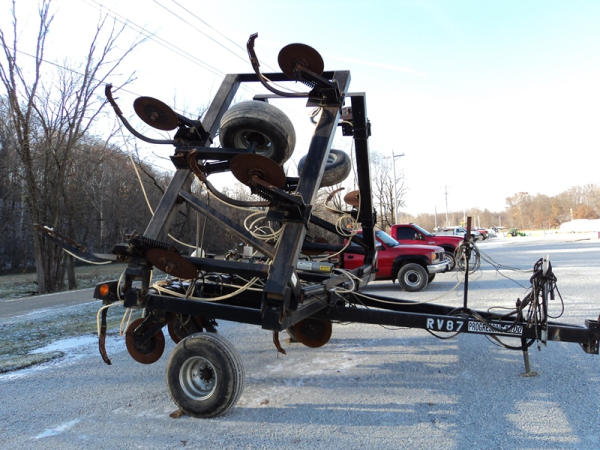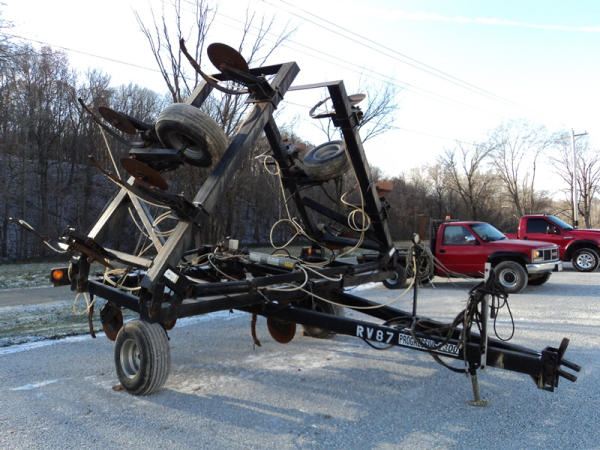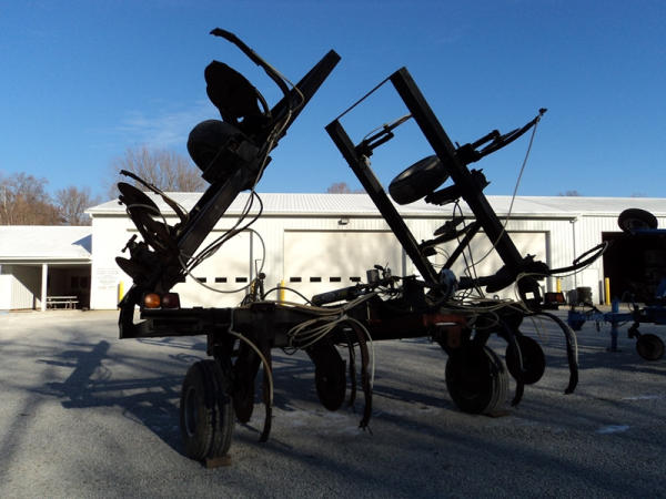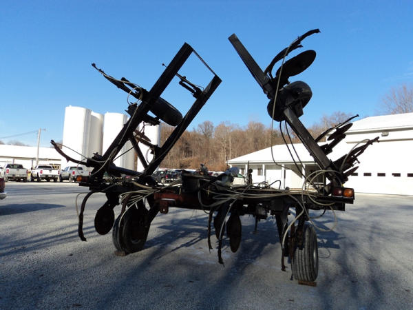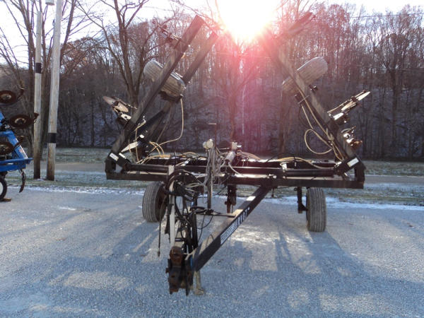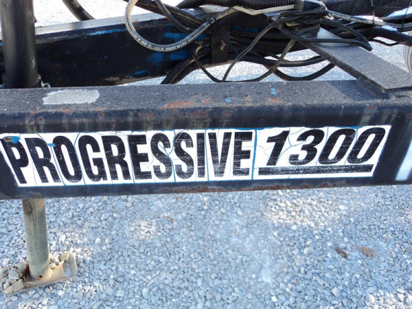 Progressive Tool Bar (PZ0822, Unit RV87), Progressive 1300 13 knife pull type tool bar, coulters, Hiniker heat exchanger, hydraulic wings, 12.5L-15 flotation tires, rear hitch.