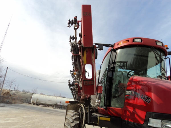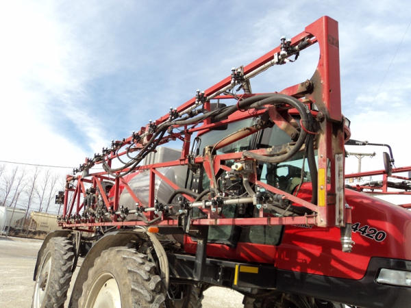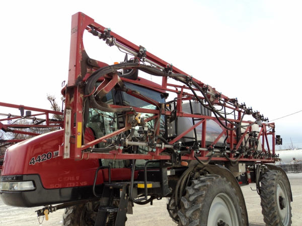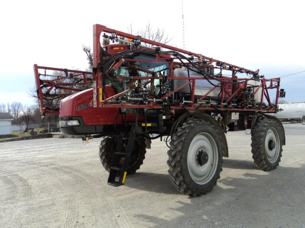 2008 CaseIH SPX 4420 Sprayer (PZ0828), diesel engine, hydrostatic transmission, air conditioning, heat, Am/Fm CD stereo, becon light, leather seat, 1200 gallon stainless steel liquid system, 100' boom, foam marker, poly foam marker tank, top poly rise tank, stainless steel chemical inductor, poly injection system, front fill, Good Year Ultra Sprayer 380/90R46 tires, Raven Viper Pro monitor, EZ Guide lightbar, Norac UC4+ height control, shows 4843 hours.