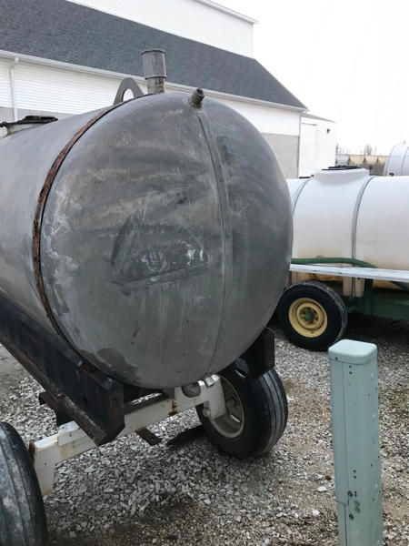 Liquid Nurse Tank (PZ0877), 1000 gallon aluminum liquid nurse tank, 5th wheel running gear, 11L-15 flotation tires.