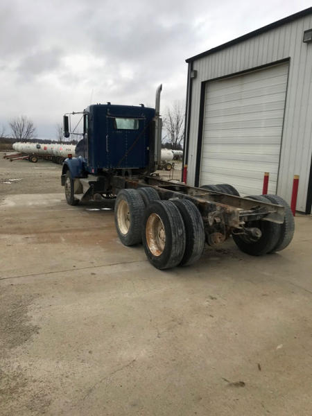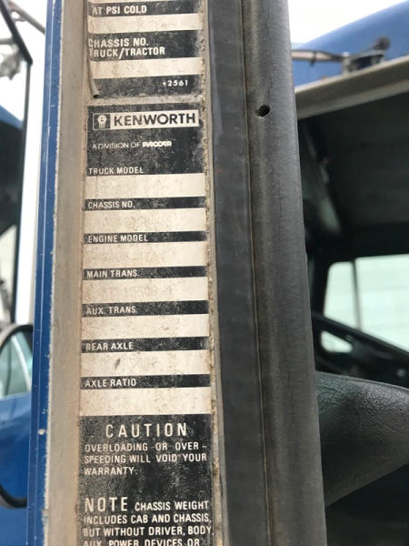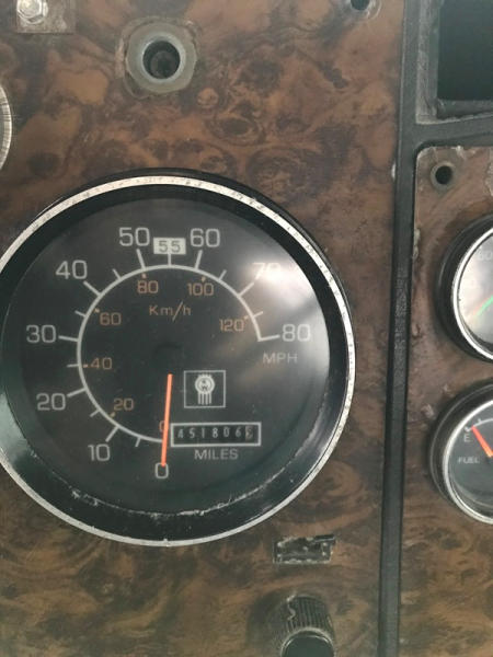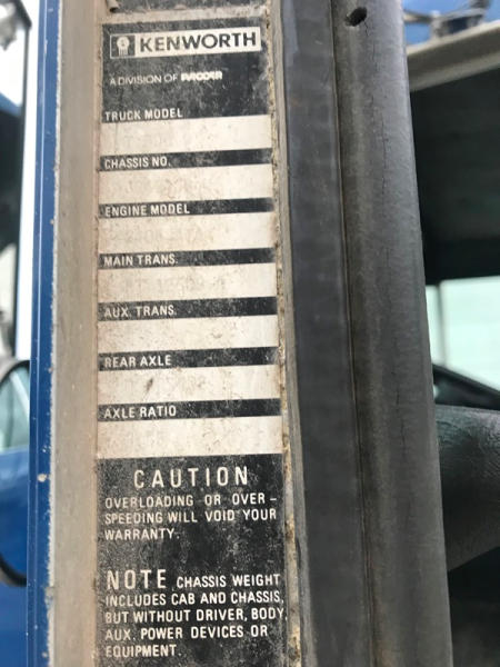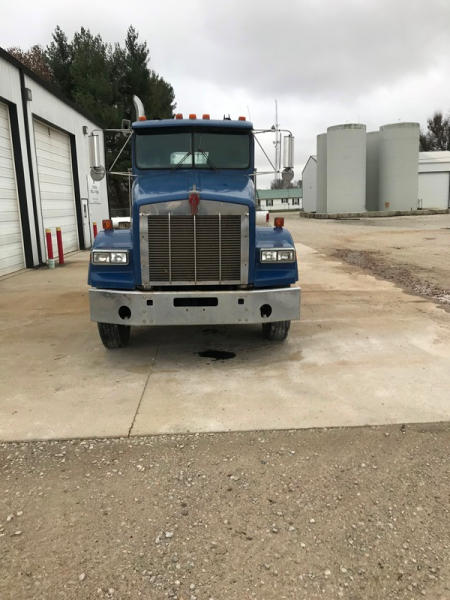 1987 Kenworth T800 Truck (PZ0876), diesel engine, 10 speed transmission, heat, Am/Fm radio, tandem axle, full screw, 295/75R22.5 tires, shows 451,806 miles.