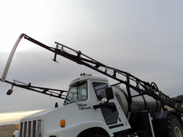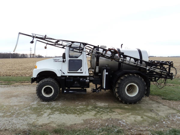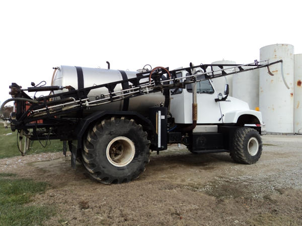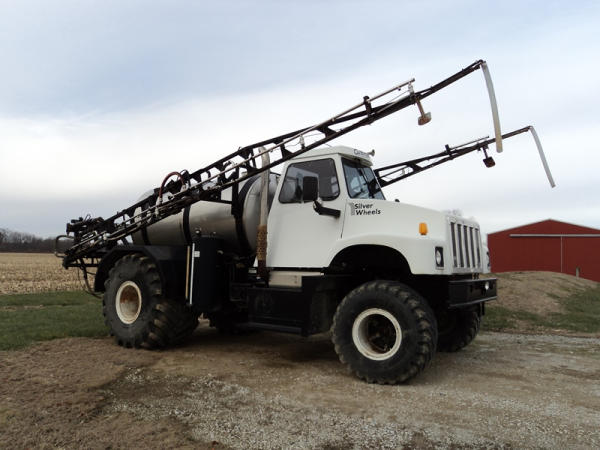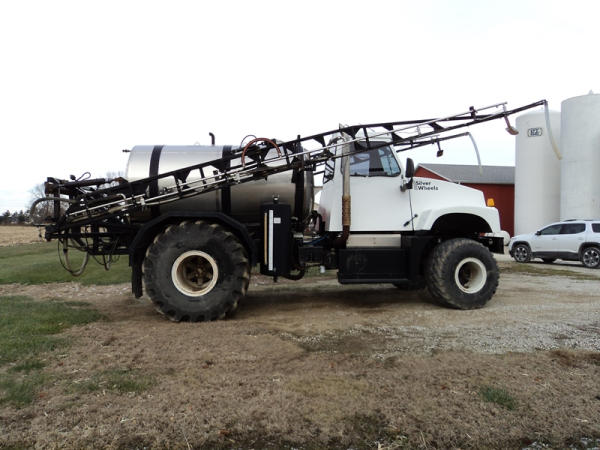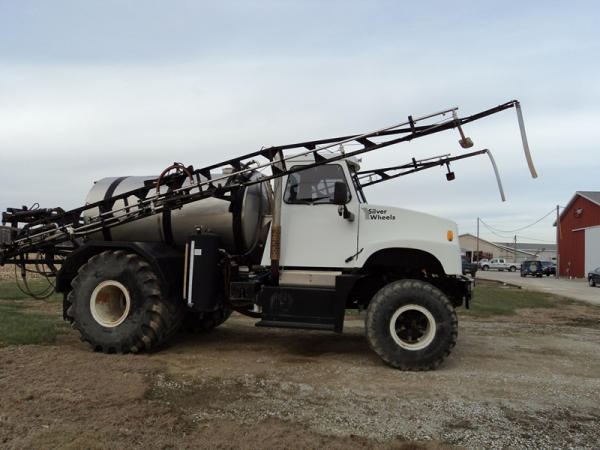 1996 IHC Silver Wheels CenterRide Liquid Floater (PZ0832), DT466 diesel engine, Allison automatic transmission, air conditioning, heat, Am/Fm CD stereo, 1800 gallon stainless steel liquid system, 65' boom, foam marker, stainless steel foam marker tank, Durco pump, Good Year 48x 25.00-20 front tires, Good Year 1000/50R25 rear tires, Richway nozzle stops, Raven SCS460 monitor, shows 4858 hours, 68,909 miles.