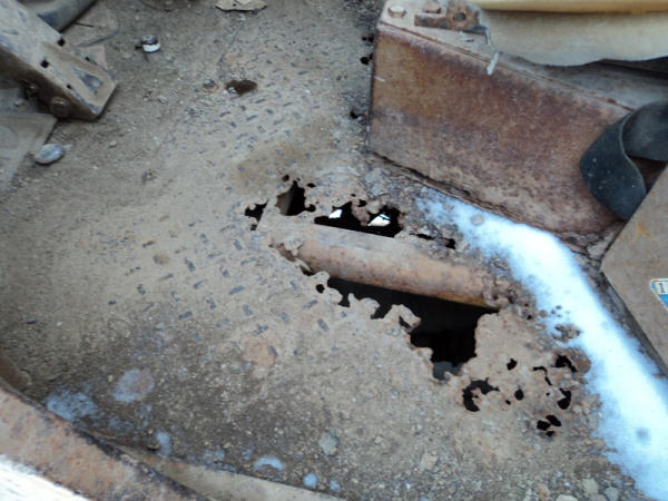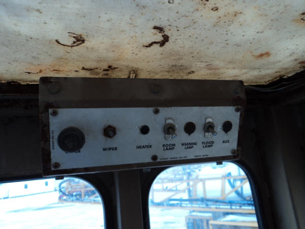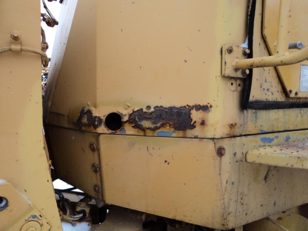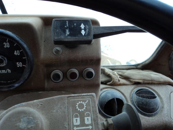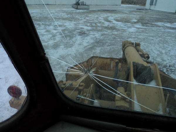 Notes: Hydraulic lift cylinder leaks, crack in glass.