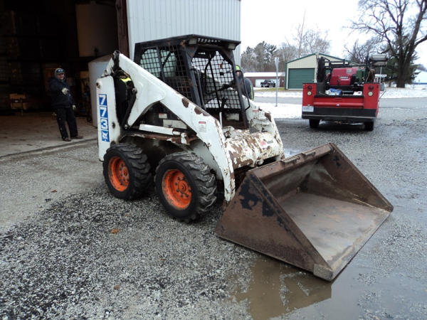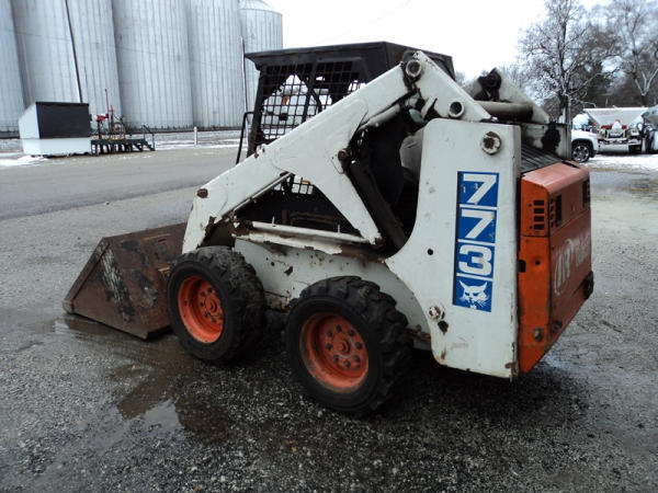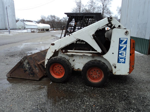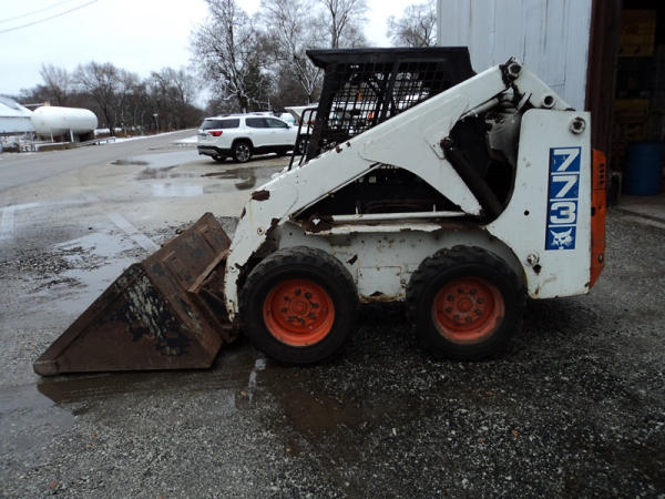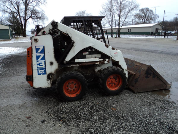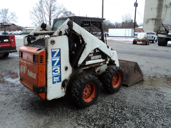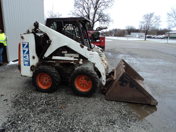 1997 Bobcat 773 Skid Steer (PZ0756), diesel engine, hydrostatic transmission, cab, lights, 67" bucket, 10-16.5 tires, shows 2374 hours.