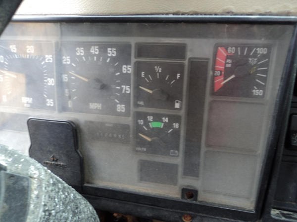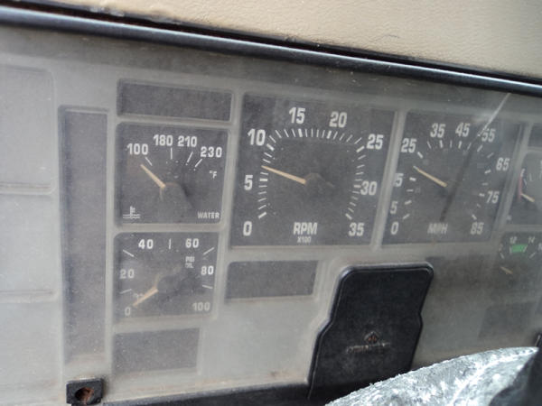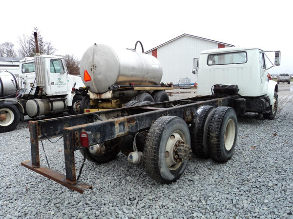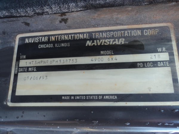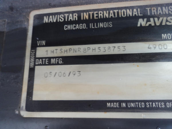 1993 IHC 4900 Truck (PZ0772), diesel engine, Spicer 7 speed transmission, heat, tandem axle, full screw, 11R22.5 tires, shows 312,693 miles.