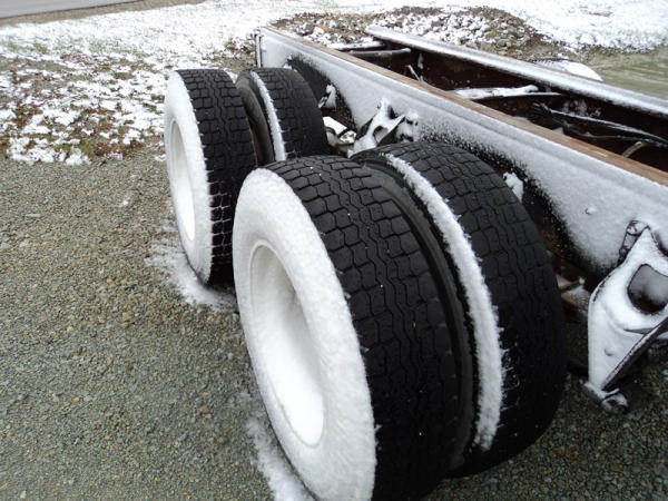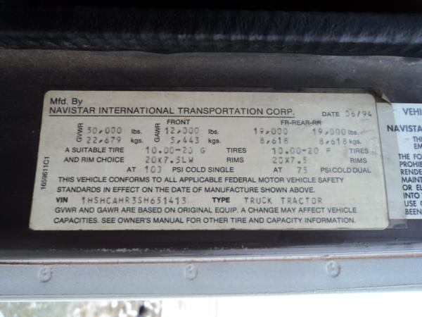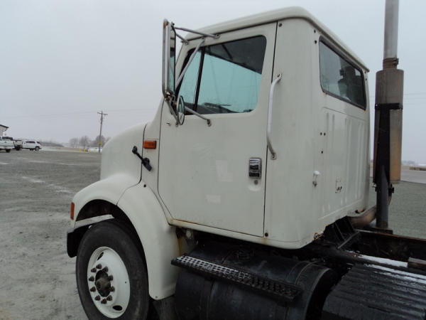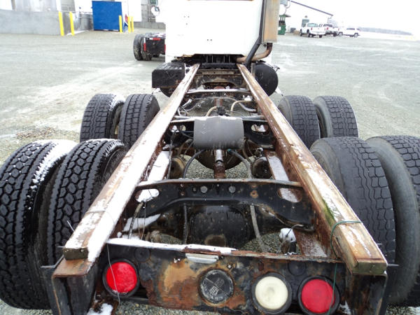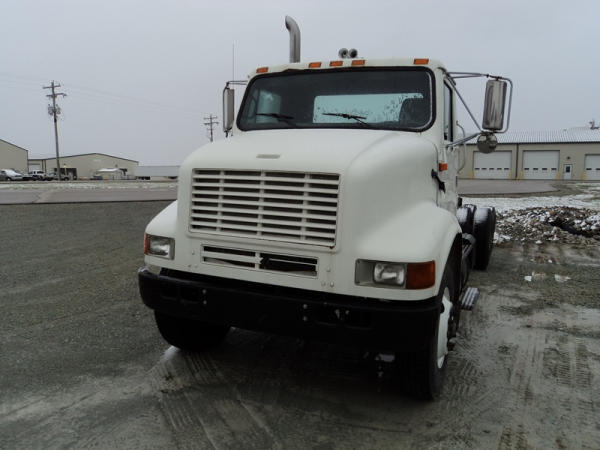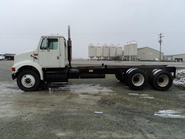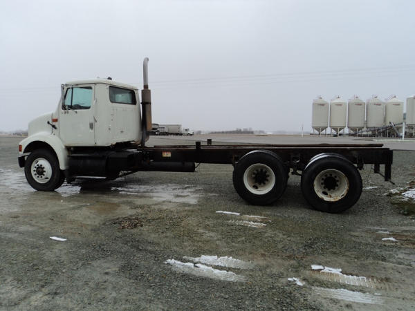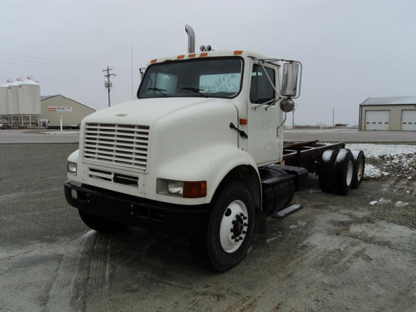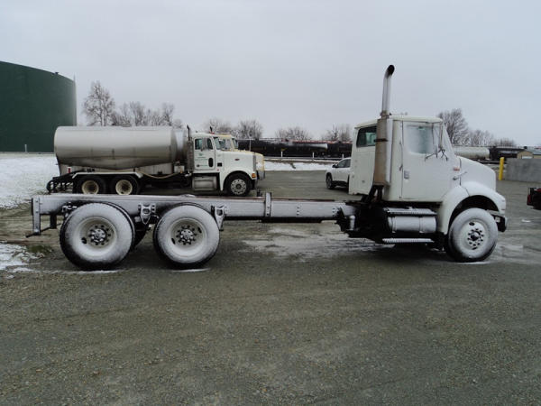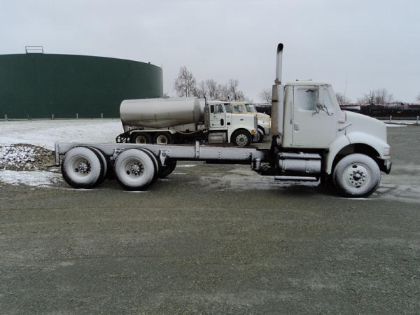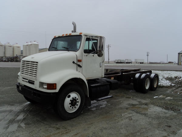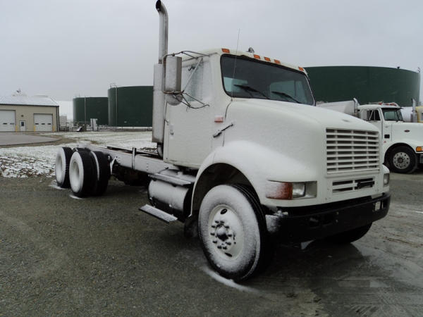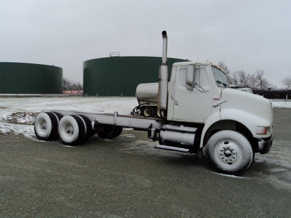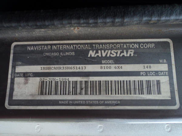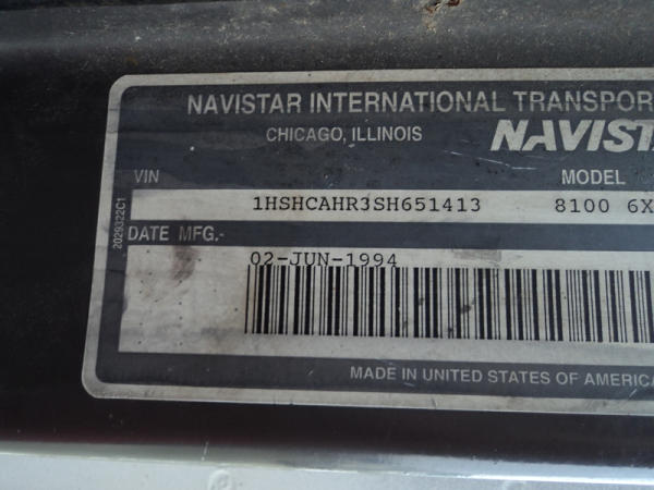1995 IHC 8100 Cab Chassis Truck (PZ0779, Unit 997), Cummins M11 diesel engine, 10 speed transmission, air conditioning, heat, Am/Fm CD stereo, tandem axle, full screw, spring suspension, 11R22.5 tires, shows 384,768 miles.