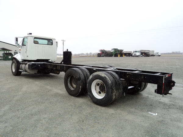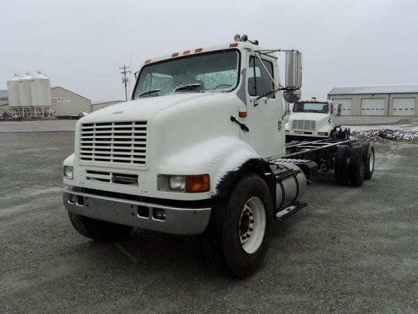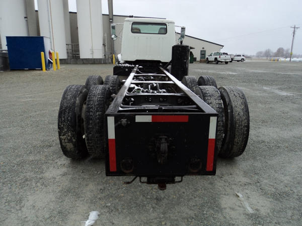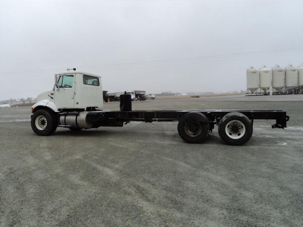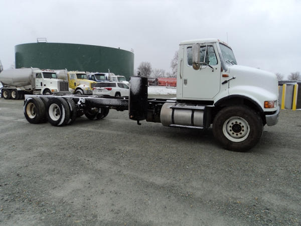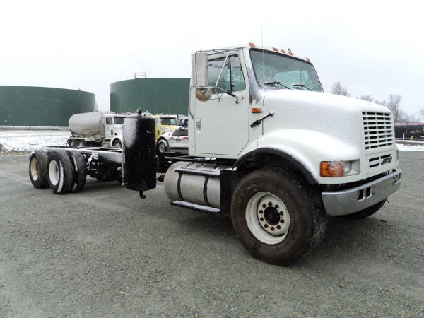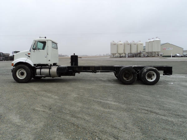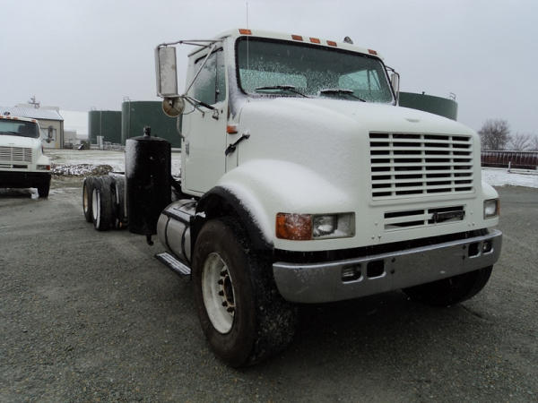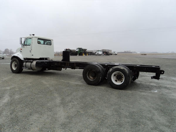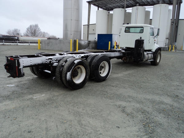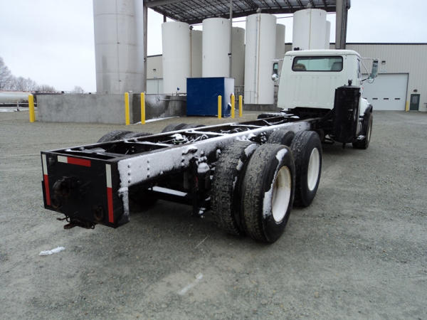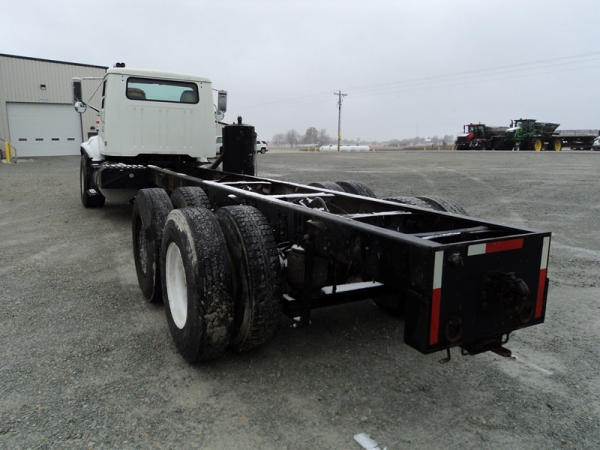 2002 IHC 8100 Cab Chassis Truck (PZ0780, Unit 260), Cat diesel engine, 10 speed transmission, air conditioning, heat, Am/Fm CD stereo, cruise control, tandem axle, full screw, air ride suspension, rear pintal hitch, 425/65R22.5 front tires, 11R22.5 rear tires, shows 689,875 miles.
