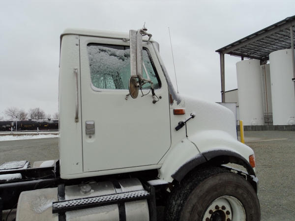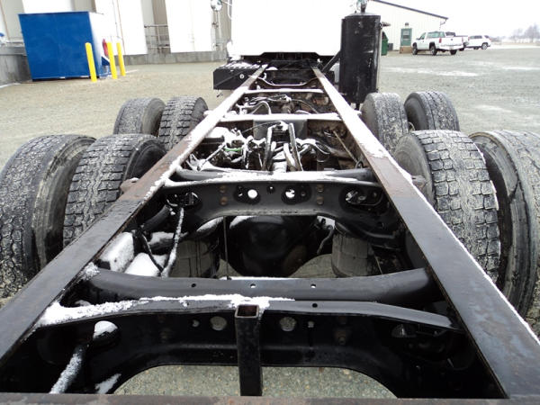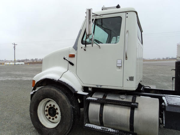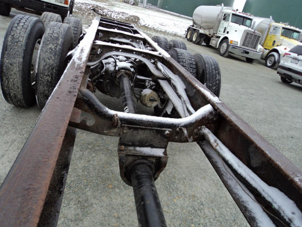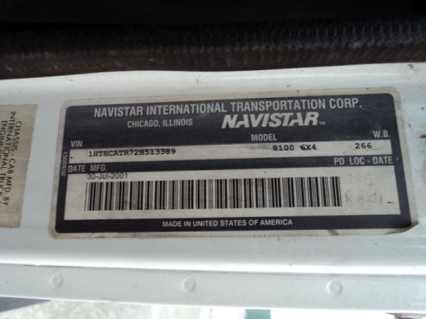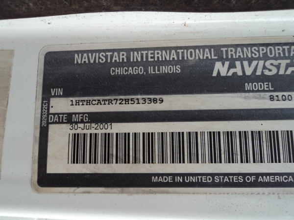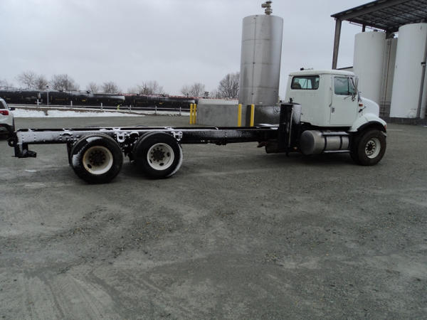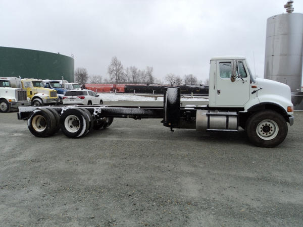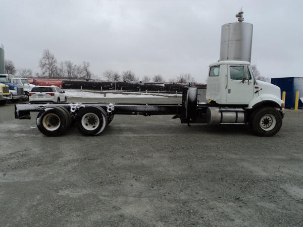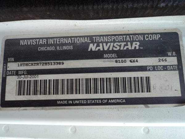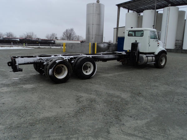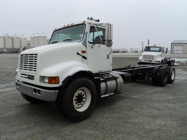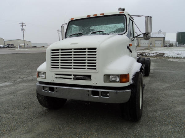 2002 IHC 8100 Cab Chassis Truck (PZ0780, Unit 260), Cat diesel engine, 10 speed transmission, air conditioning, heat, Am/Fm CD stereo, cruise control, tandem axle, full screw, air ride suspension, rear pintal hitch, 425/65R22.5 front tires, 11R22.5 rear tires, shows 689,875 miles.