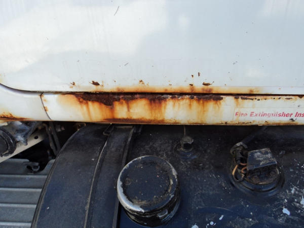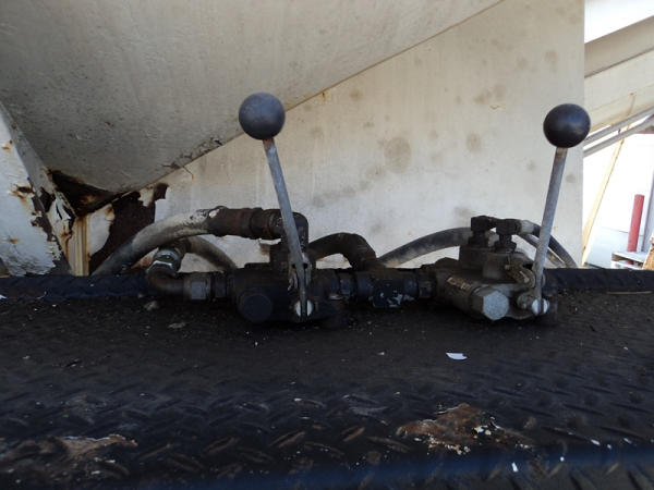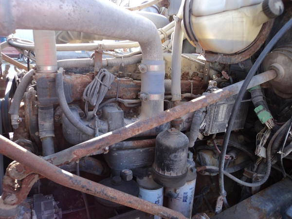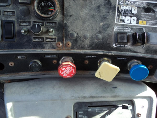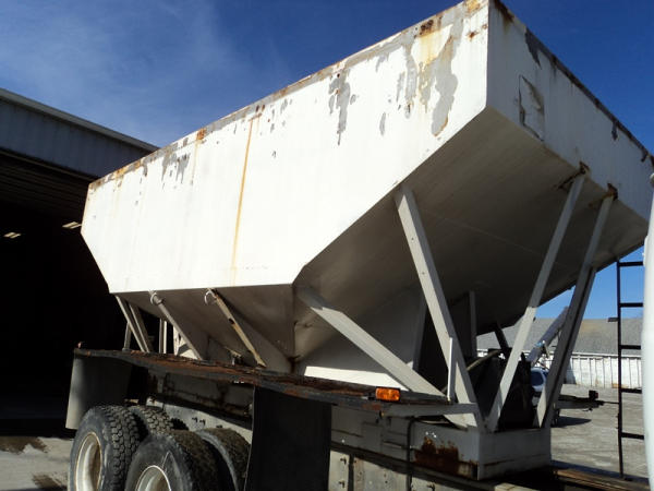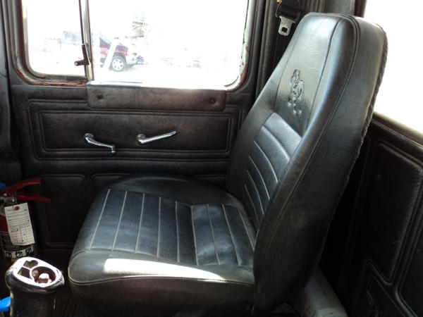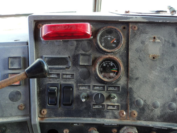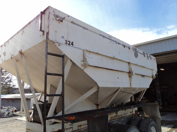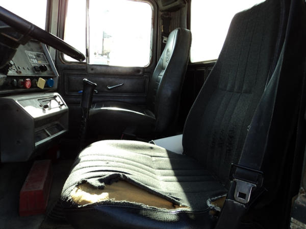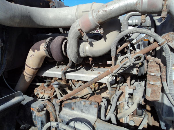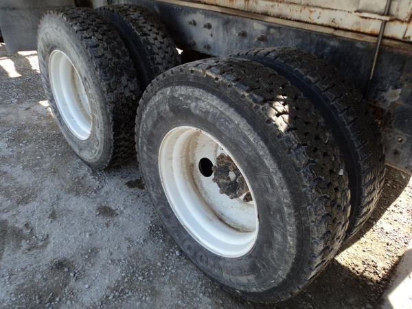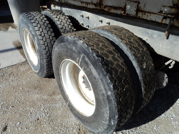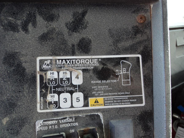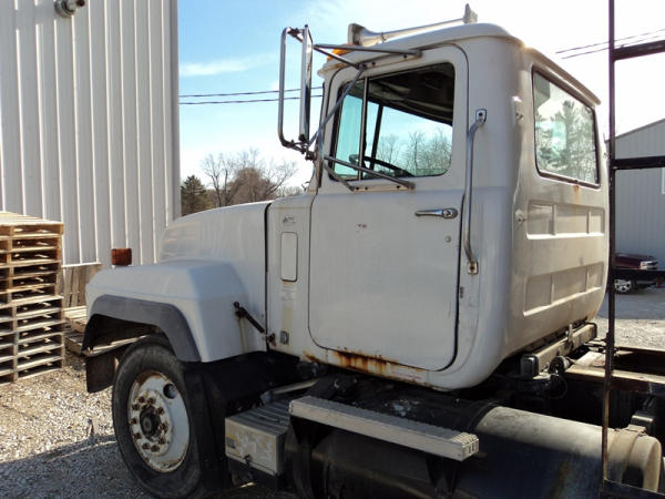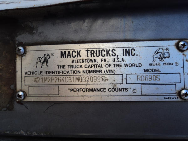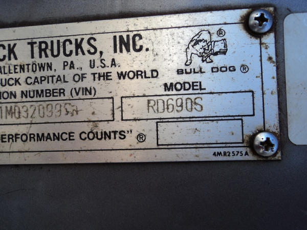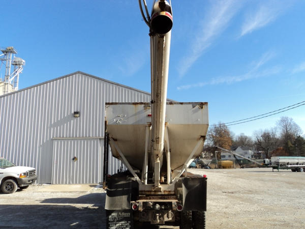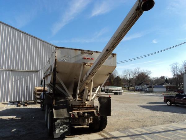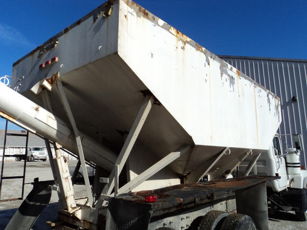2001 Mack RD690S Dry Tender Truck (PZ0827, Unit 2579), Mack EM7-300 diesel engine, Maxitorque transmission, air conditioning, heat, Am/Fm cassette radio, tandem axle, full screw, 16 ton stainless steel dry tender box, rear discharge auger, all hydraulic, 295/75R22.5 front tires, 11R22.5 rear tires, shows 310,885 miles.