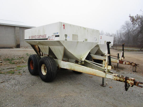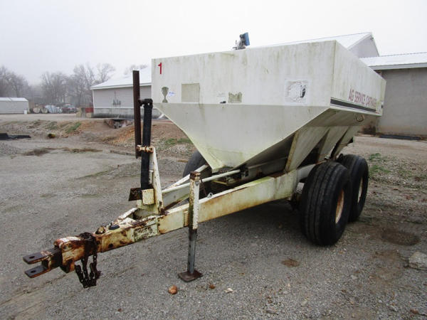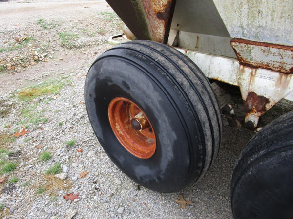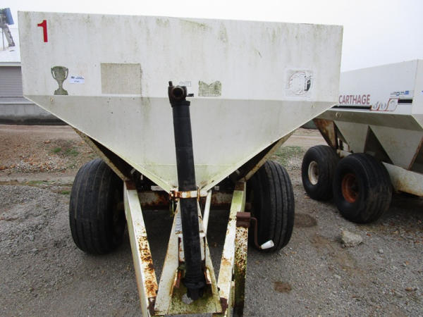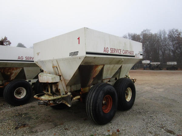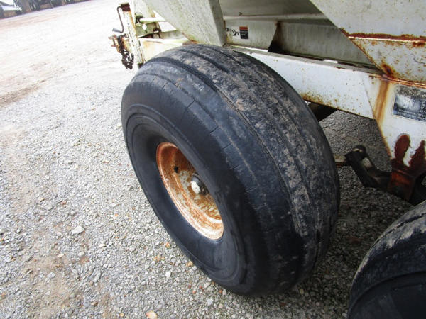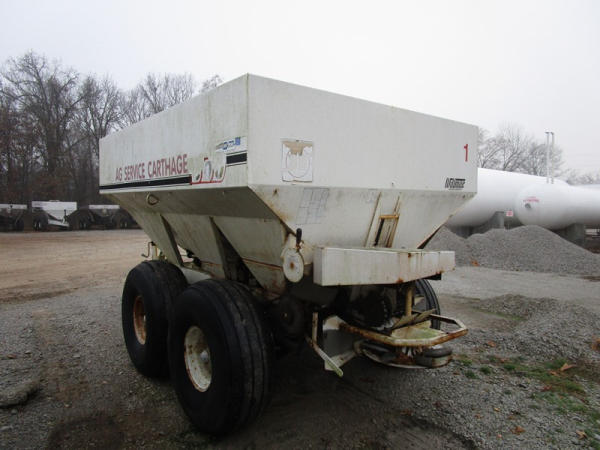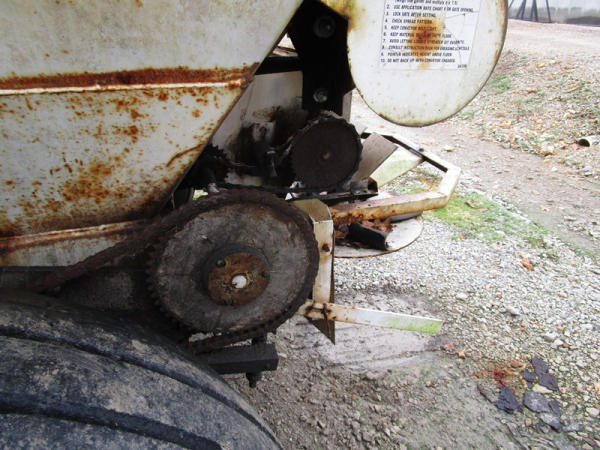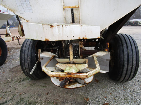 Willmar 800 Stainless Steel Dry Spreader (ED777), single spinner, PTO, 19L-16.1SL floatation tires.